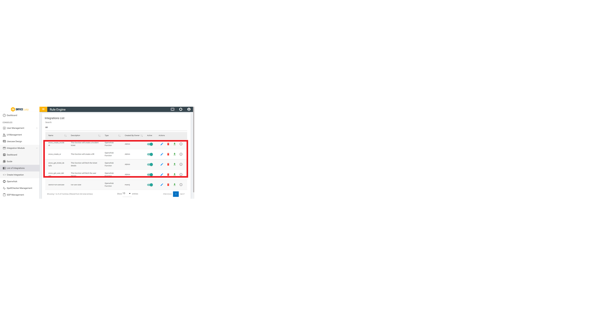 In BigFix AEX, SNOW Connector lets us to create Openwhisk functions and Rules (required to call this functions) with respect to Create Service request/Incident tickets and read the status of the tickets by just giving the Username, Password and URL.