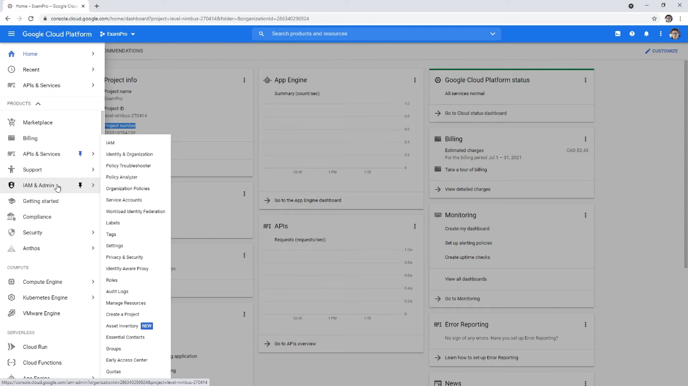 Figure 2. Figure 374 - Selecting the IAM & Admin from Google Chat Dashboard