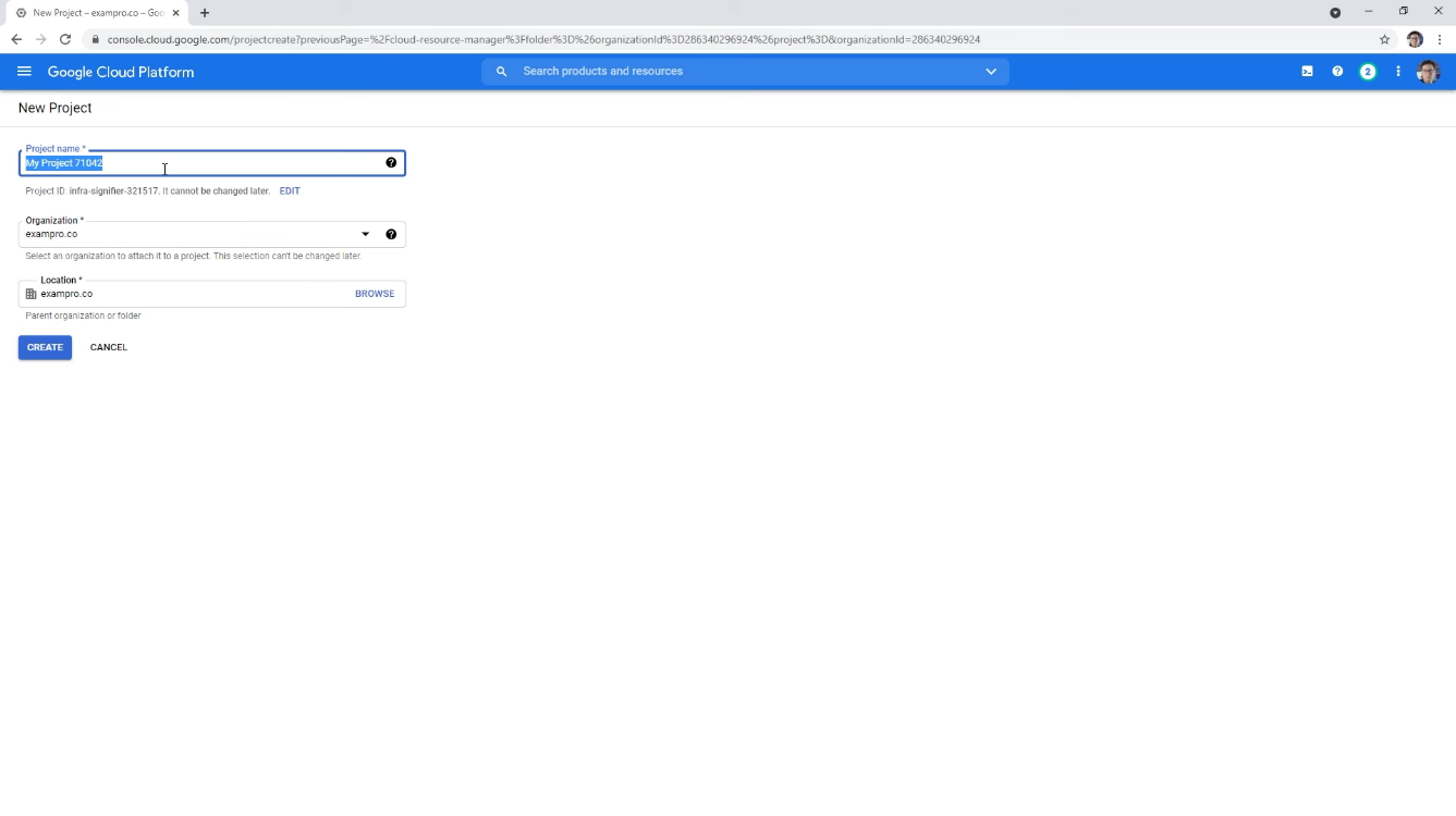 - In the Google Cloud console, go to Menu 🡪 IAM & Admin 🡪 Create a Project.