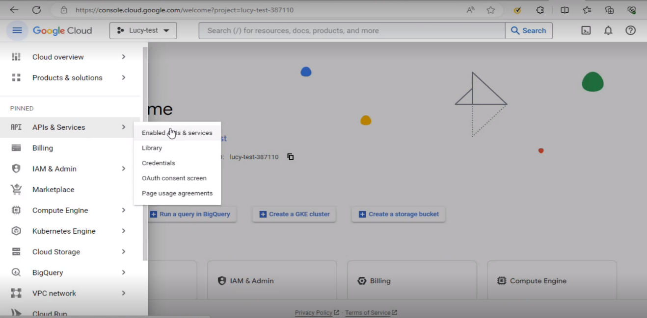 - After login to the project, navigate to API and services 🡪 select Enabled API’s and Services.