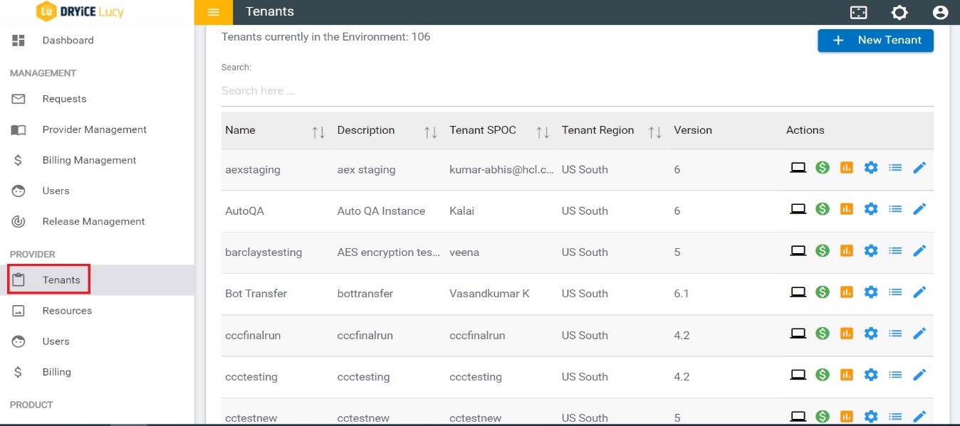 - The user needs to access Global Admin Console for BigFix AEX over GChat and MS teams URL – https://dryiceBigFix AEX.ai and navigate to the Tenants tab.