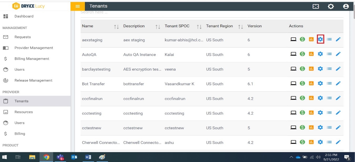 - Under Tenant, search for Ascension UAT tenant and click on the configure icon as shown in the following figure: