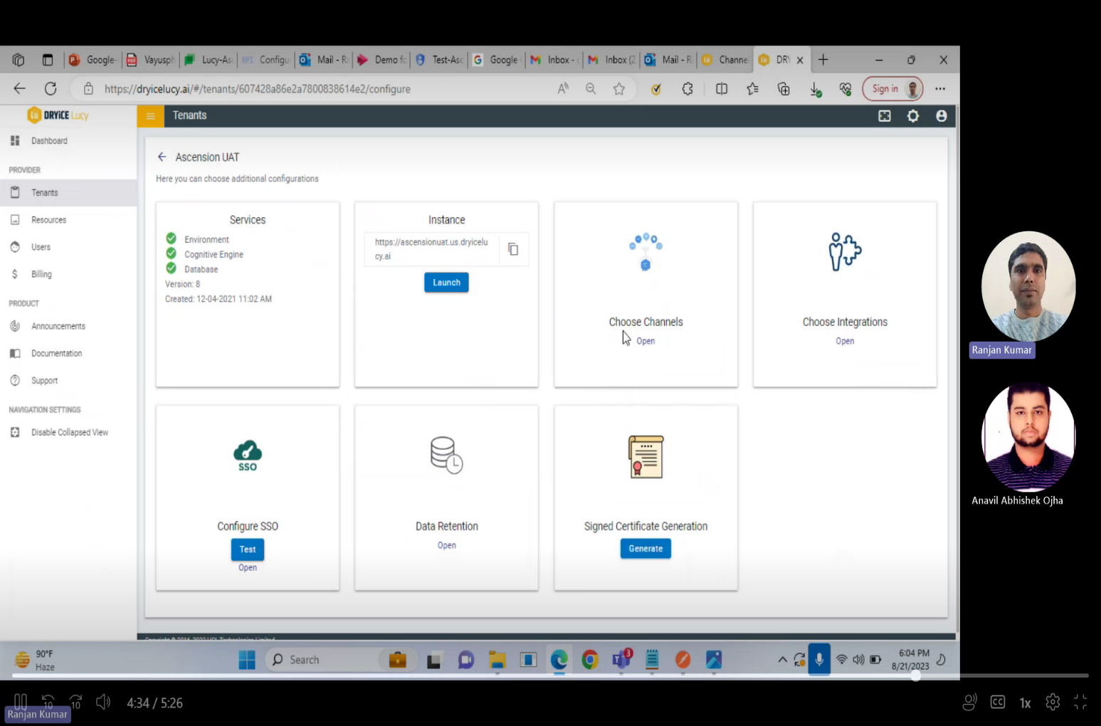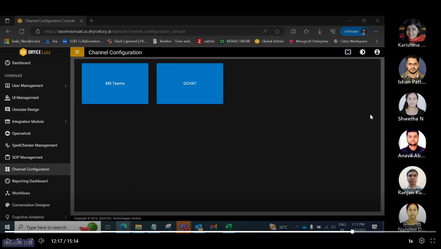 - On Clicking on the Channel configuration card in cognitive console for selected tenant, the page appears as shown in the figure below:
