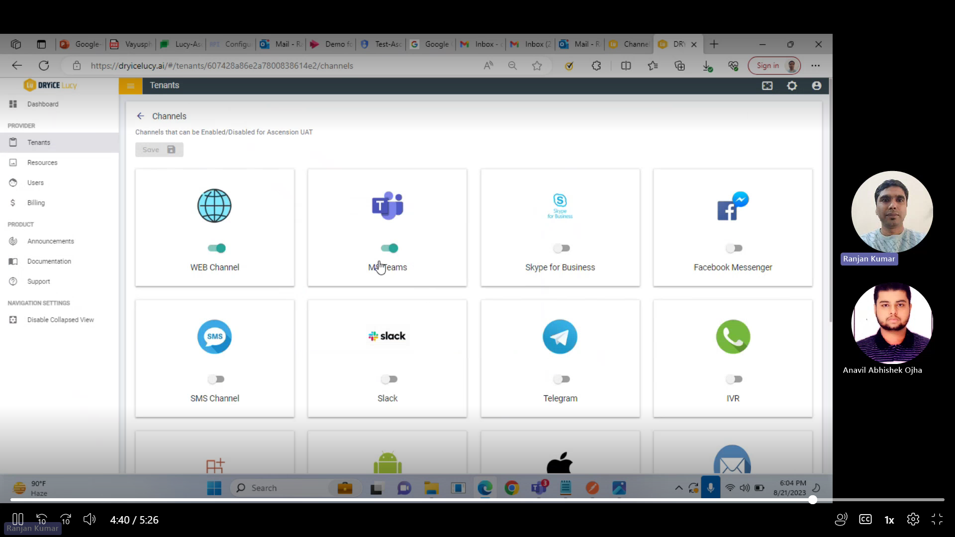 - Once the changes are saved, it will be available for the selected tenant under the channel configuration console.
