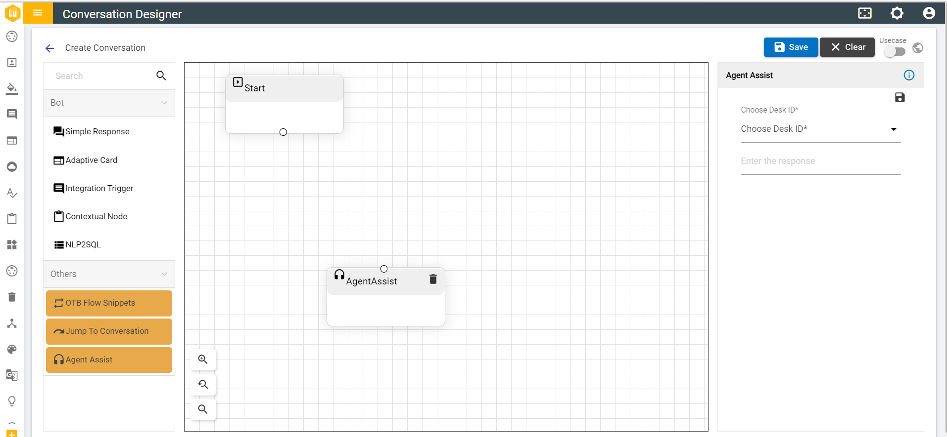 After creating the conversation of Agent Assist, the conversation section appears as follows: