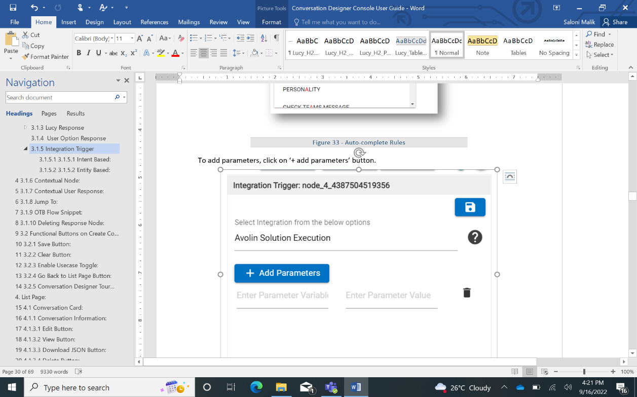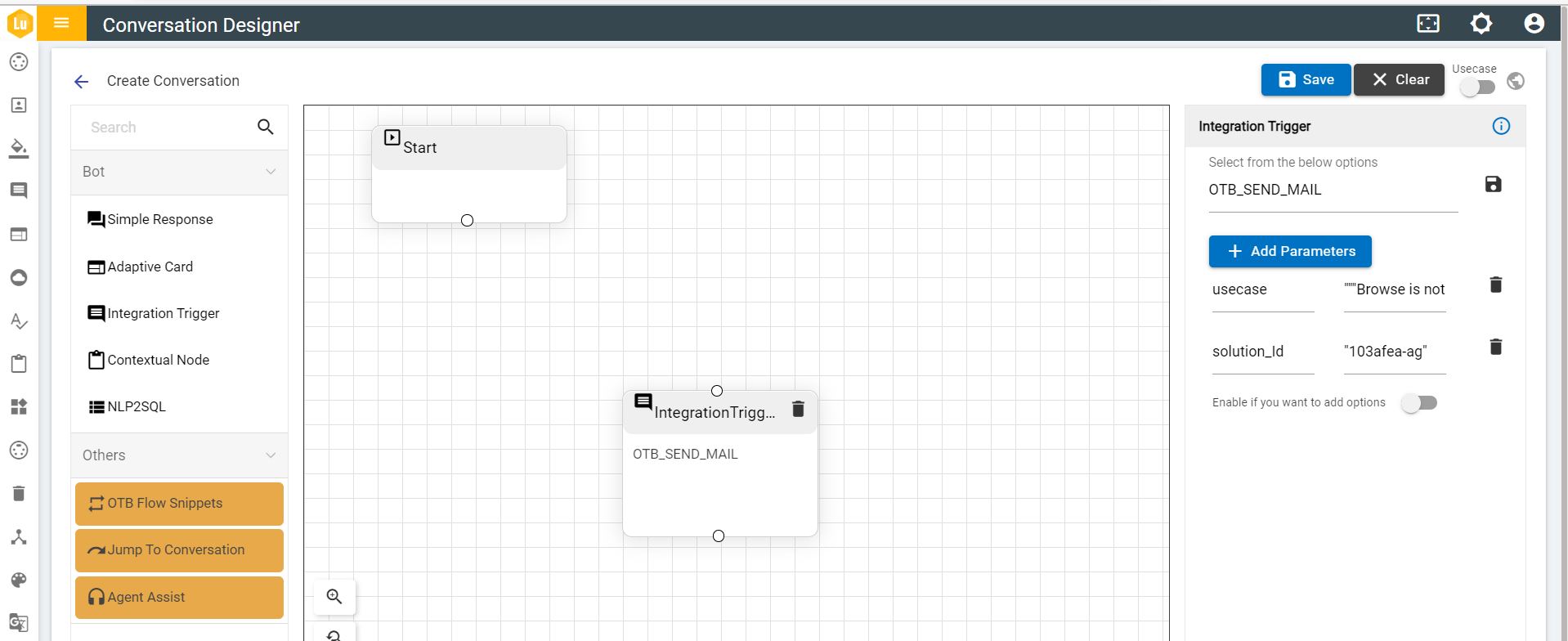 This node is for API Rule that the user wants to integrate with their use cases. The conversation form for integration trigger appears. The form is discussed briefly with the validations in conversation form section under integration trigger: