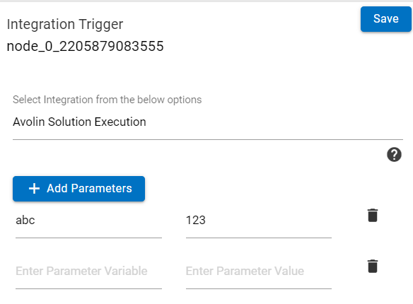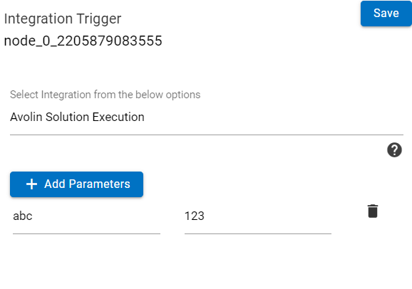 As the user drags and drops Integration Trigger node to the drop list, the drop list appears like the following figure: