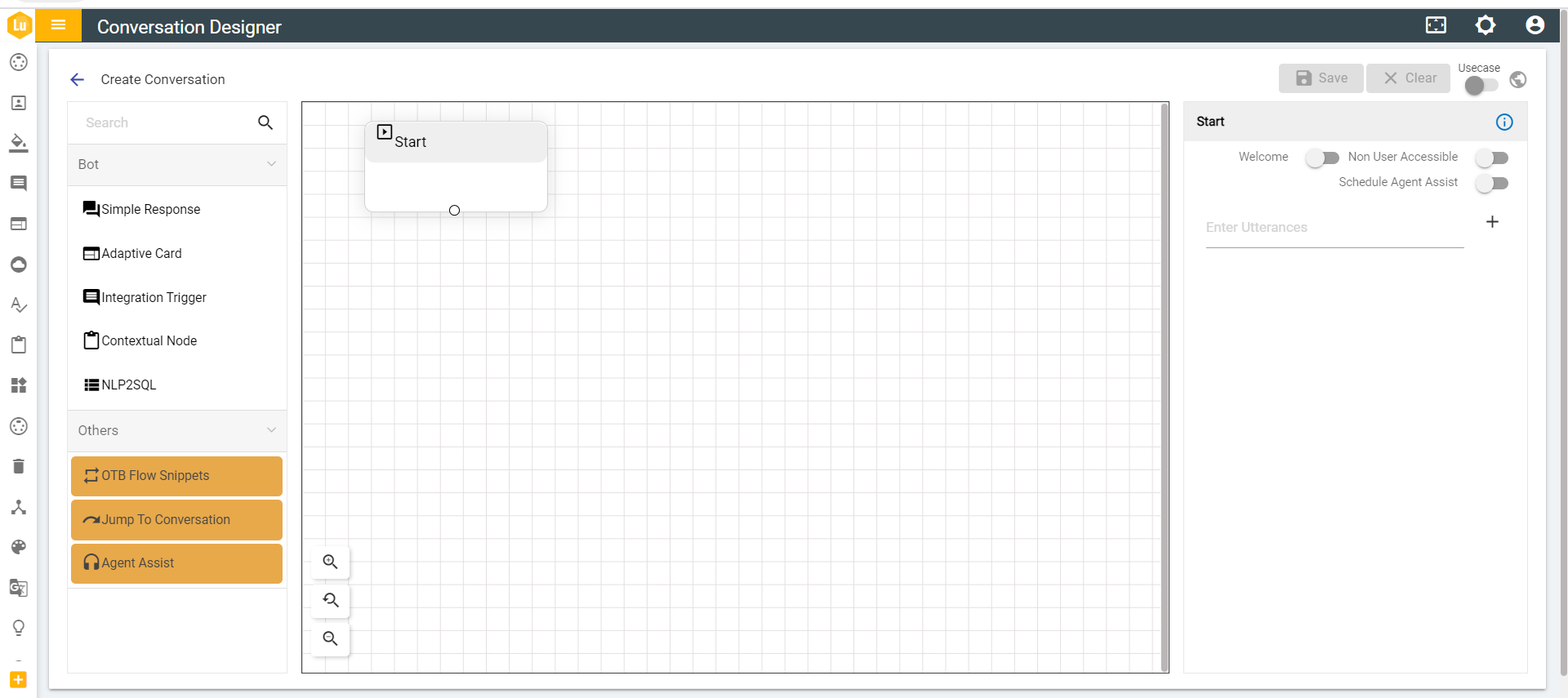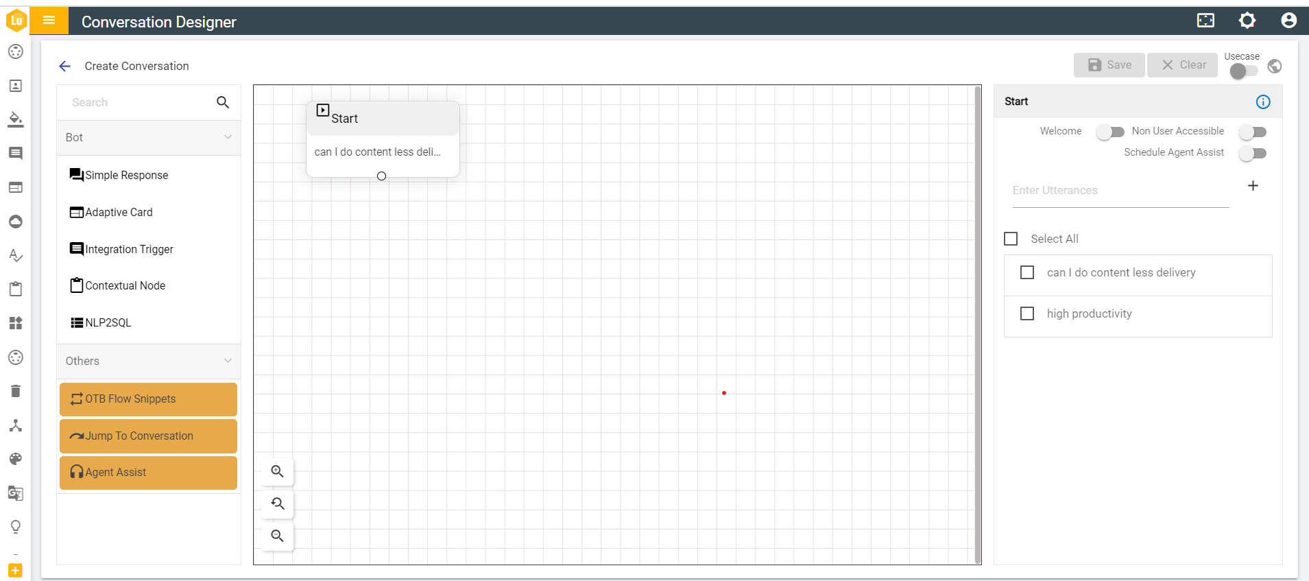 - Every conversation must have a User Response(start) node as its first node.