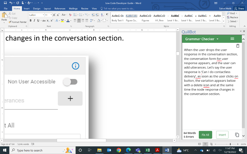 This way the user can add as many utterances as possible accordingly. Also end users should know that among all the utterances added for a single user response, only the first user response is visible in the conversation section.