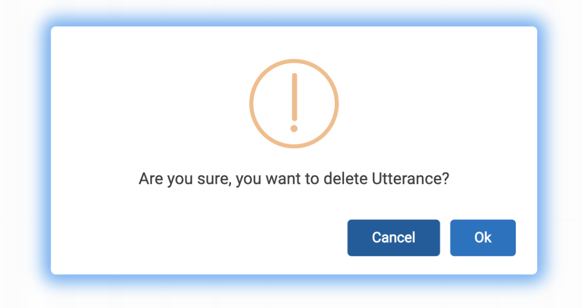 The following pop up appears to confirm the action. Clicking Ok deletes the utterance.