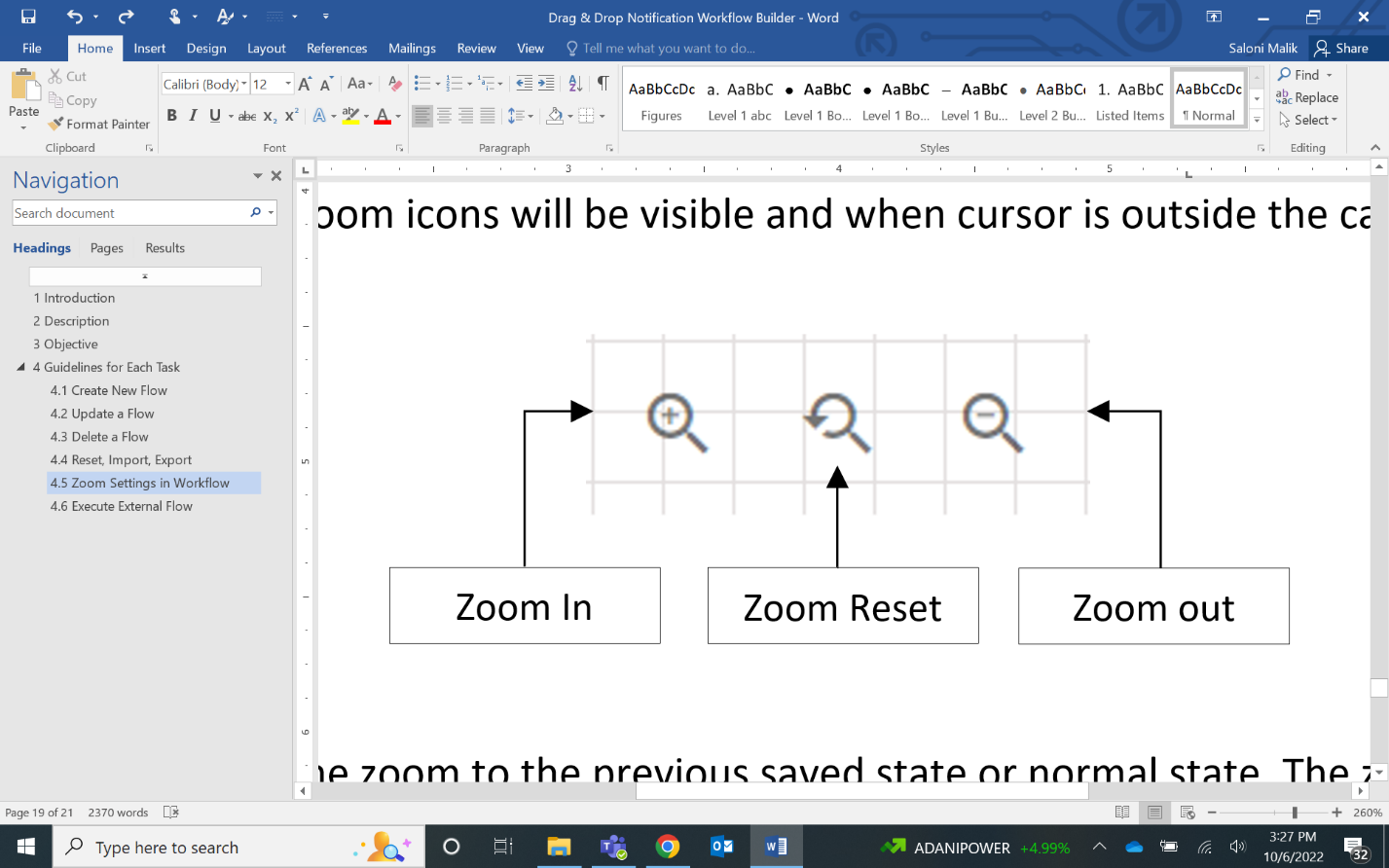 Zoom reset, resets the zoom to the previous saved state or normal state. The zoomed value is saved in the workflow. If a user saves a workflow with zoom in/zoom out percentage, it gets saved. On editing the same workflow, it will open with the zoomed in/zoomed out value only.