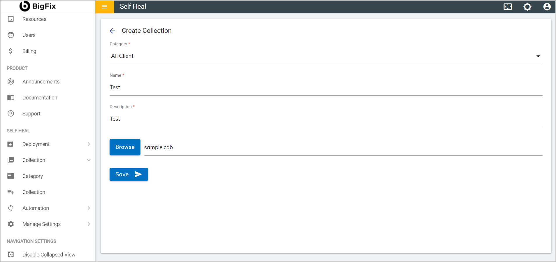- To create a collection, click on the Create button on top right corner on the Collection page.