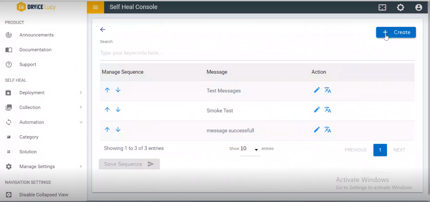 - Create a Message for a solution by clicking on the Create button, on the top right corner of the Message page.