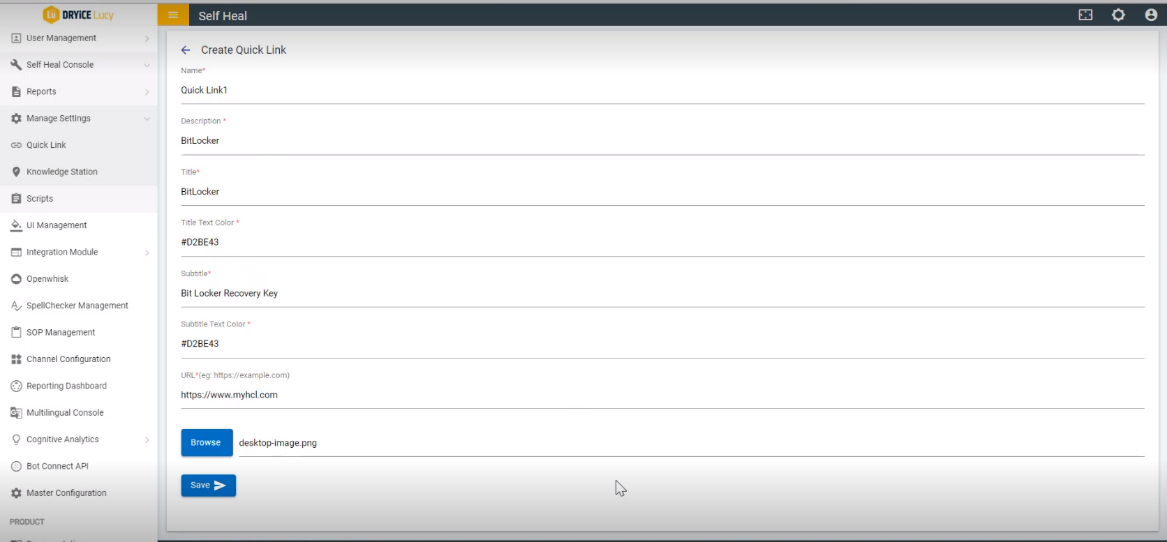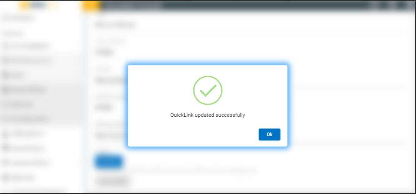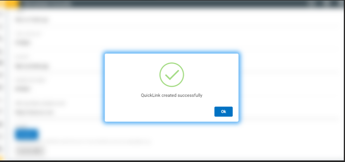 - Fill out the required fields and click Save to create a quick link. The following success message appears: