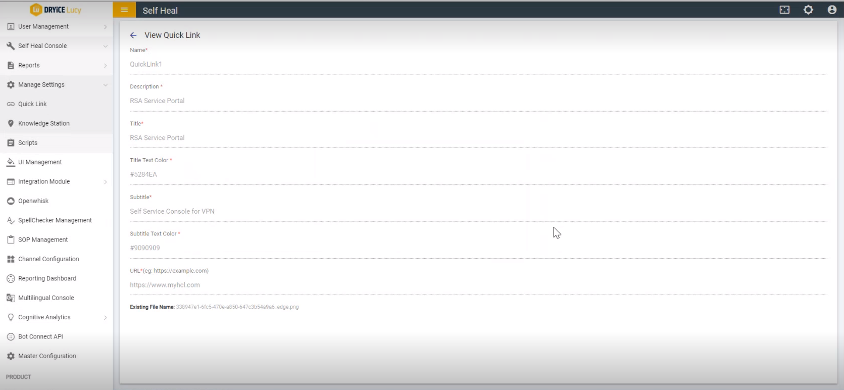 - Admin can view the details of an existing quick link by clicking on the corresponding view icon on the Quick Link page under the Actions column. The View Quick Link page appears where the admin can view the details of an existing quick link.