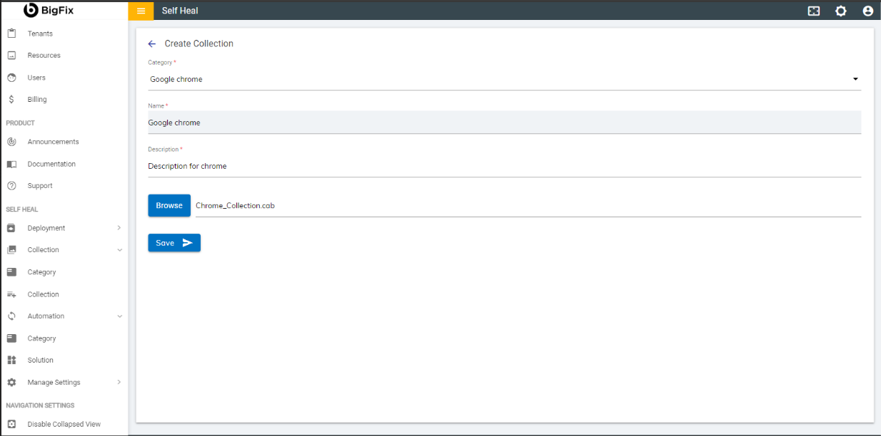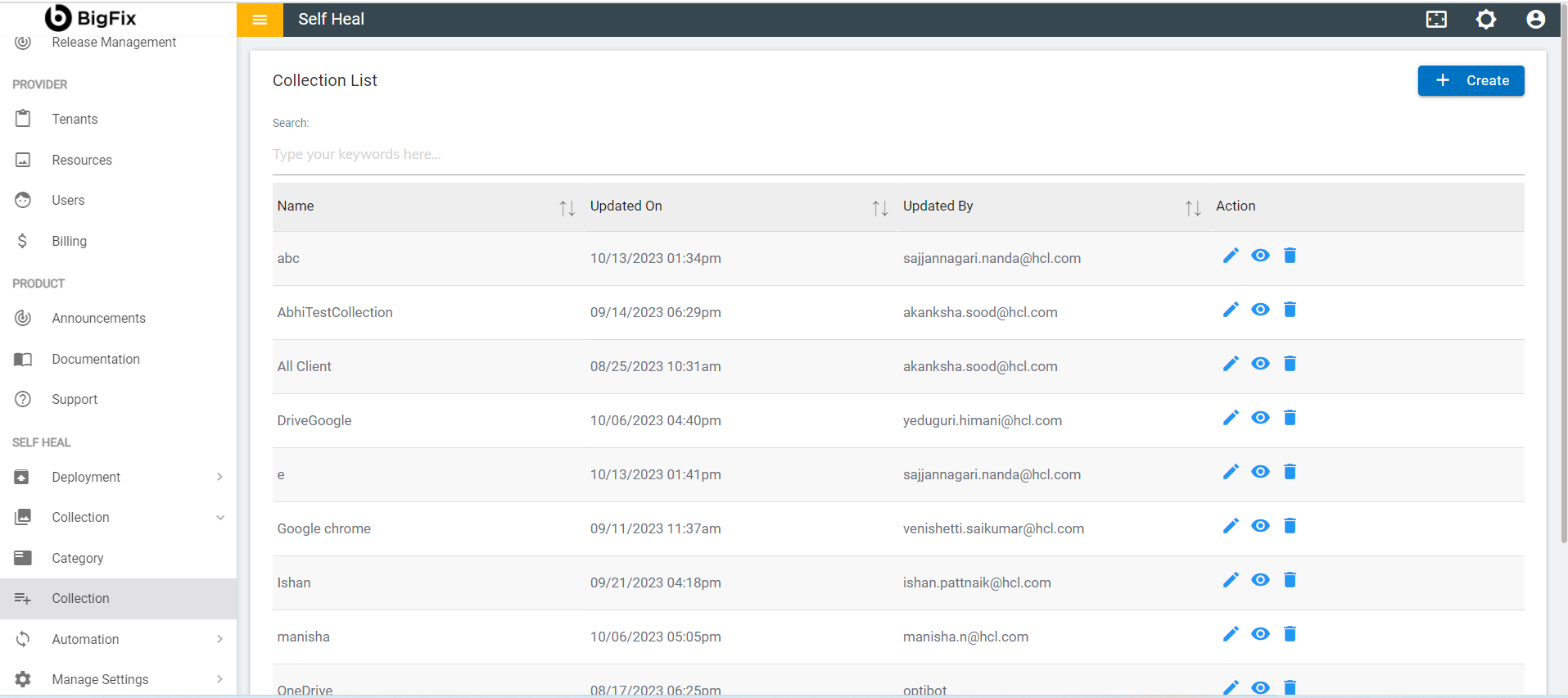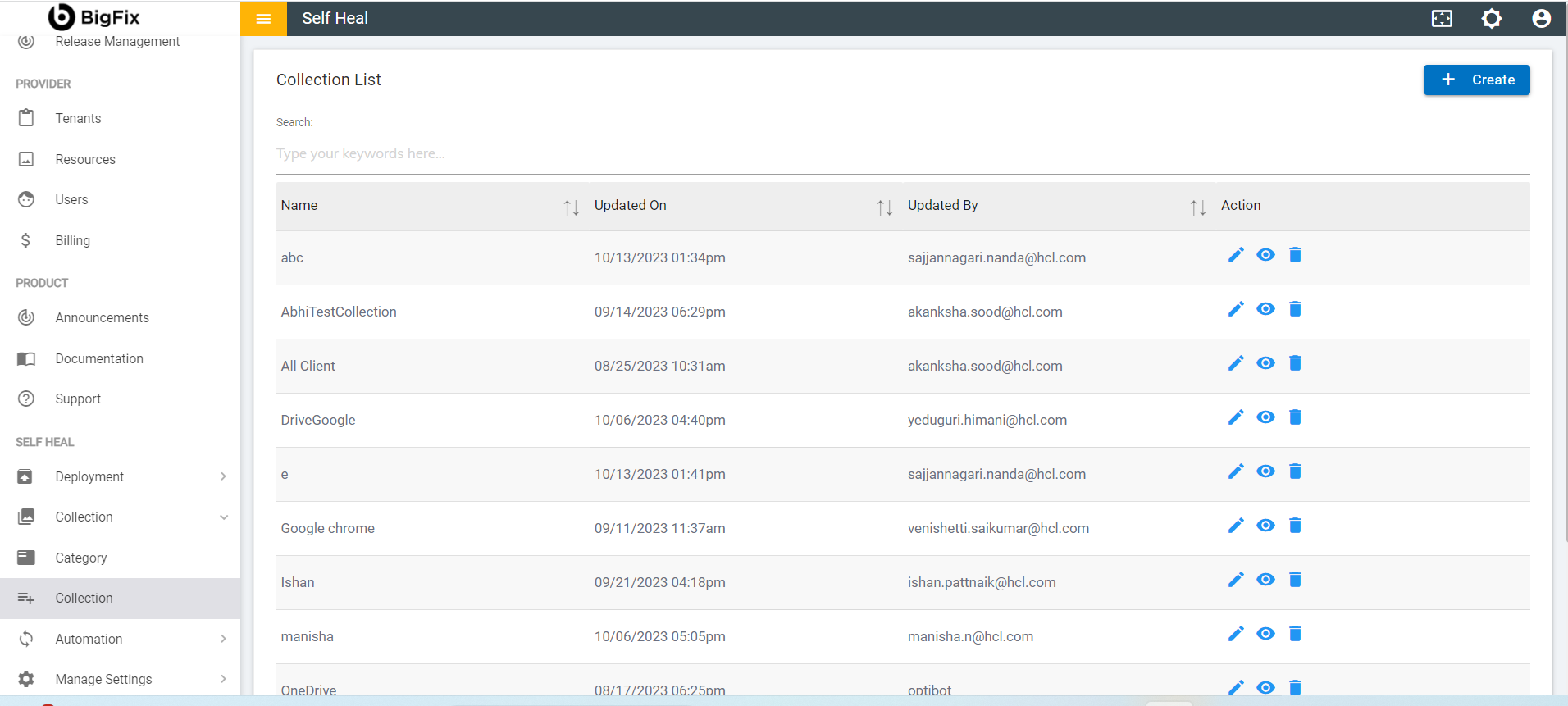 - To create a collection, click on the Create button on top right corner on the Collection page.