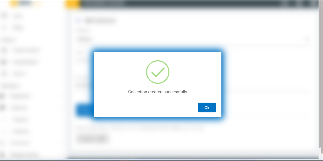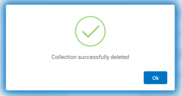 If admin clicks on the Ok button collection successfully deleted message will pop up as shown in figure