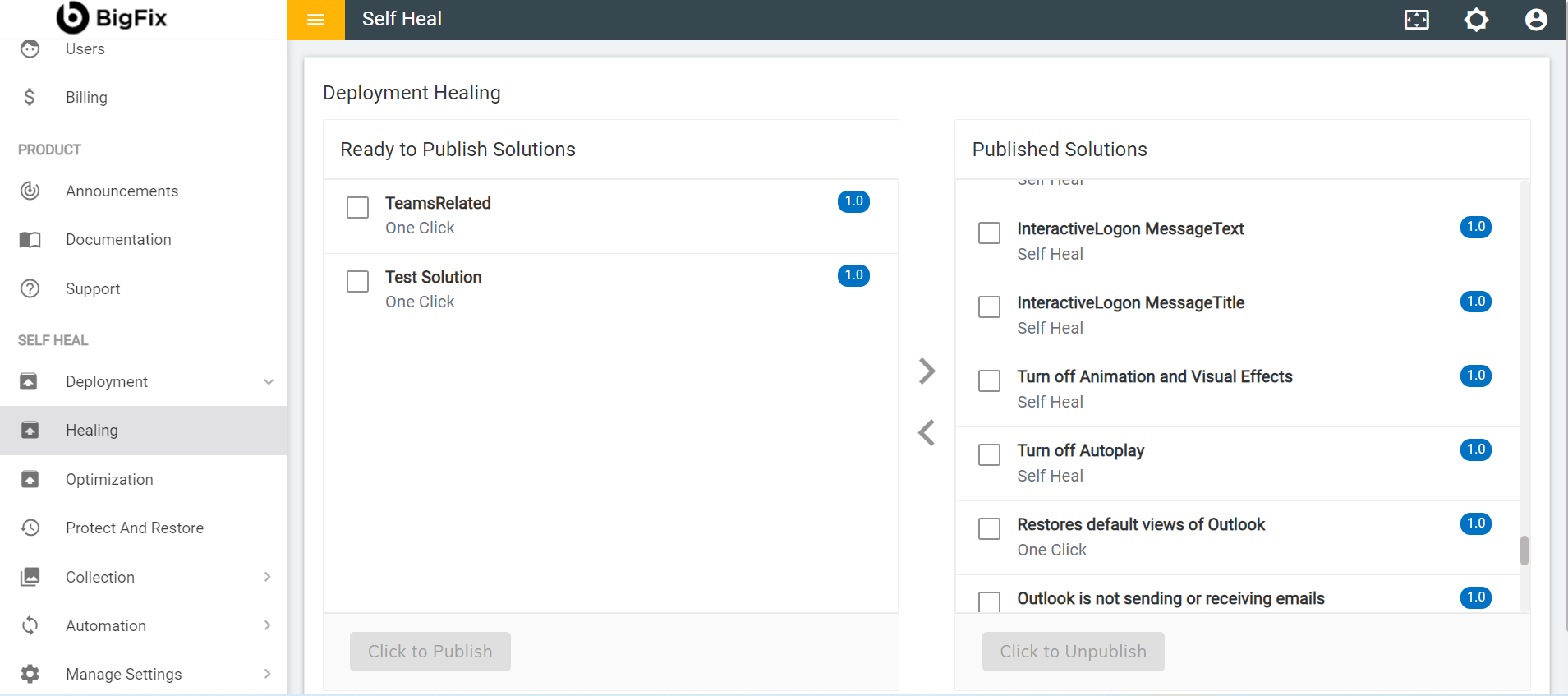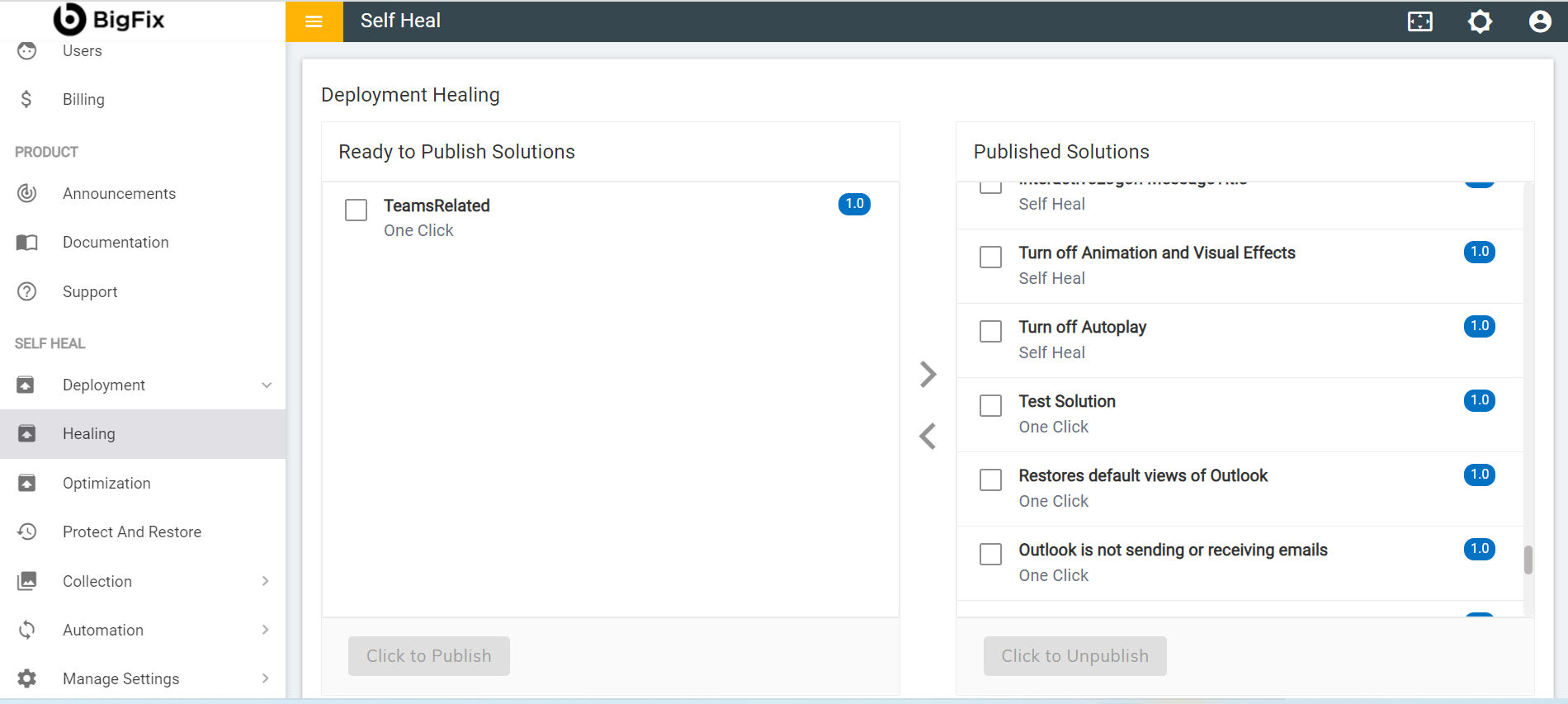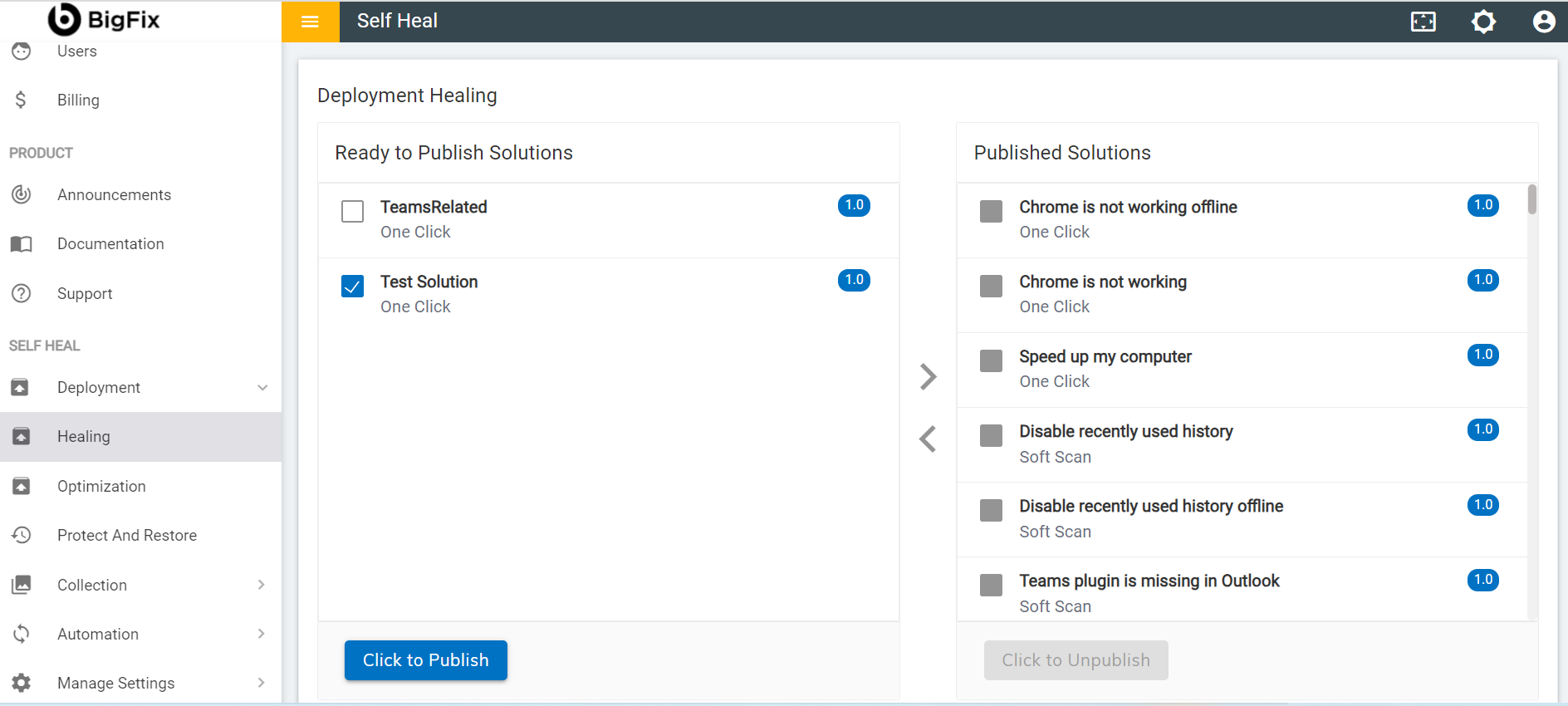 - After creating automation module with "Healing" solution type, it comes under ready to publish, as shown in the following figure: