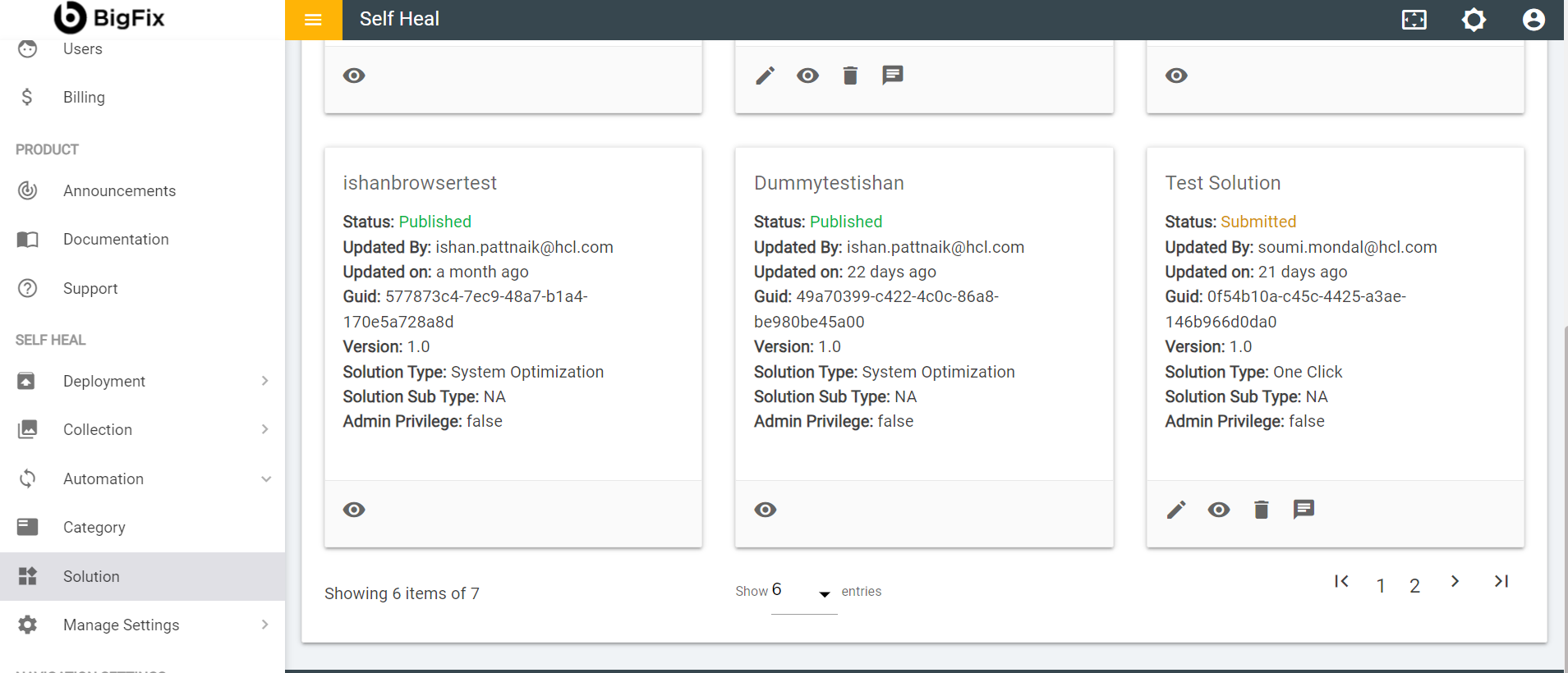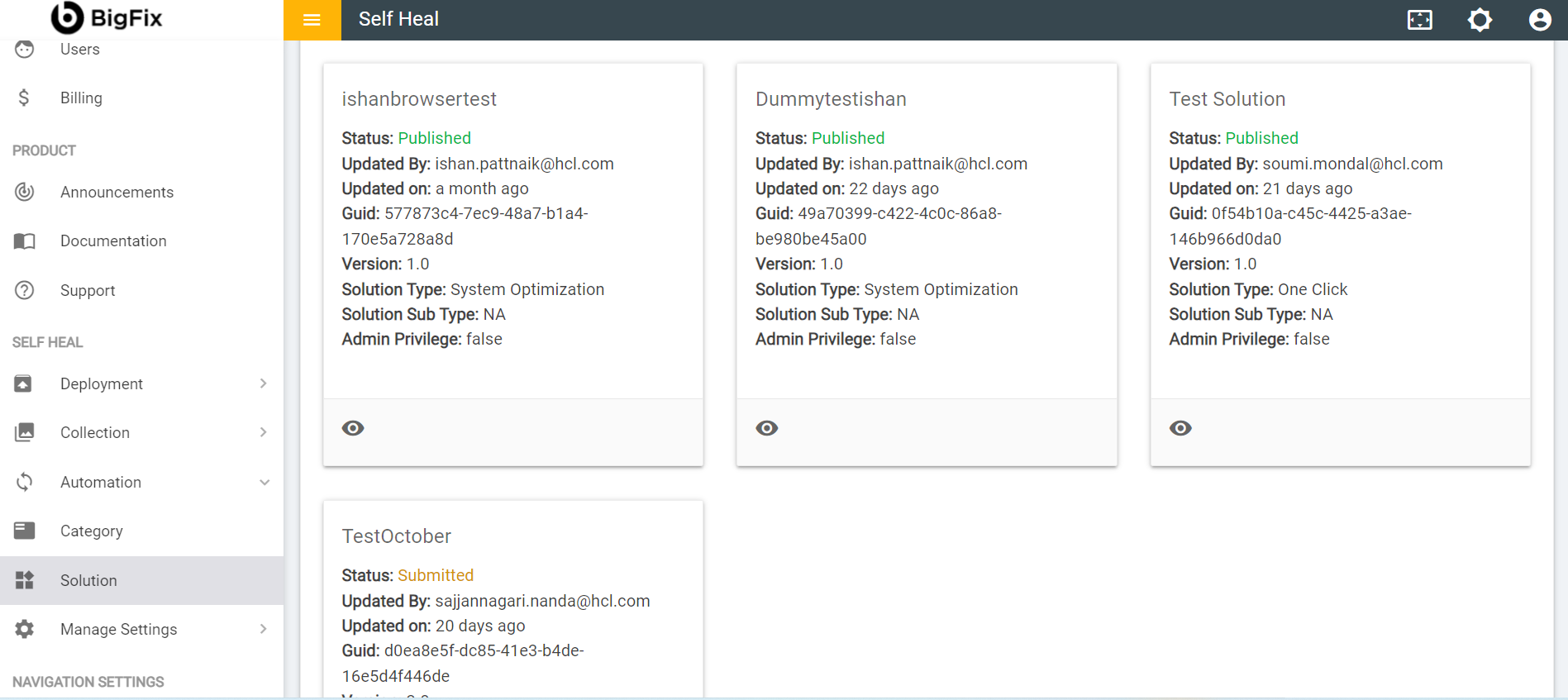 - The Status of a published solution becomes “Published” and it reflects in the automation module under the solution page.