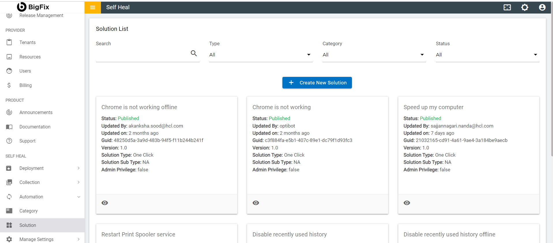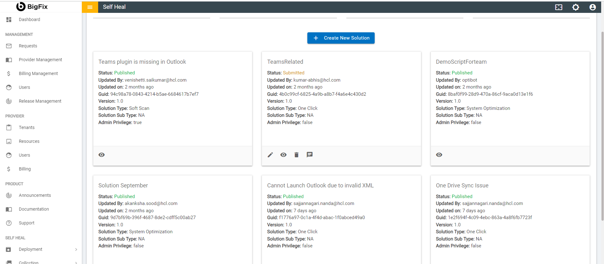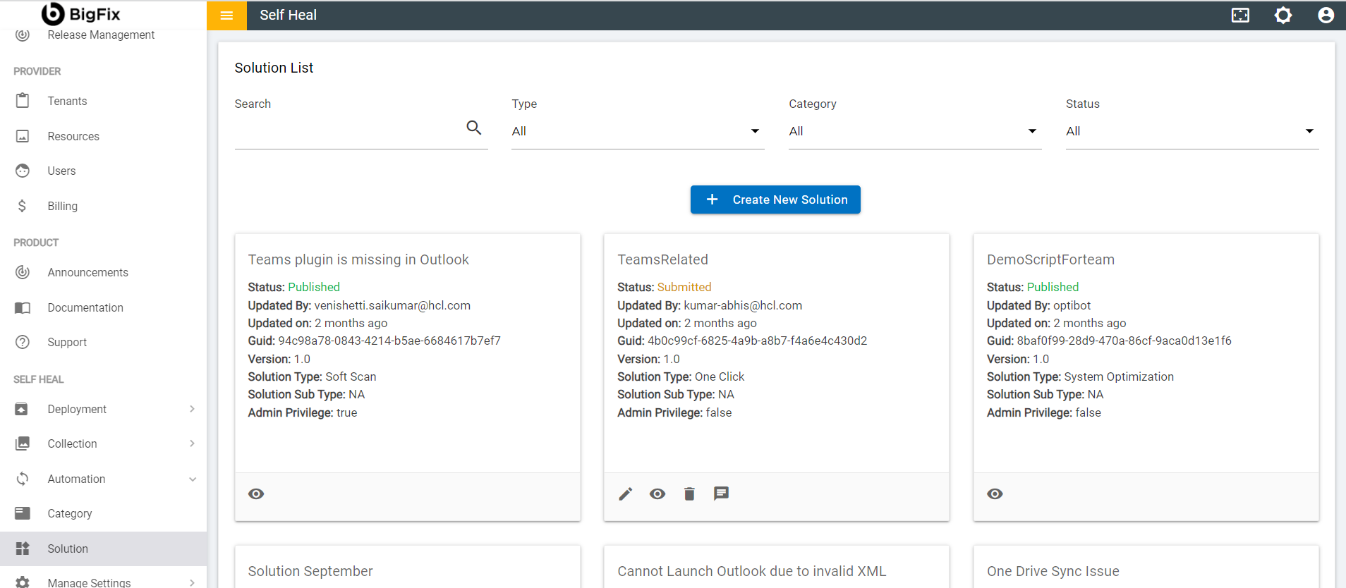- An admin can edit the details of a solution by using the edit icon in the Solution page. The admin must click the edit icon which is corresponding to the solution that he wishes to modify.