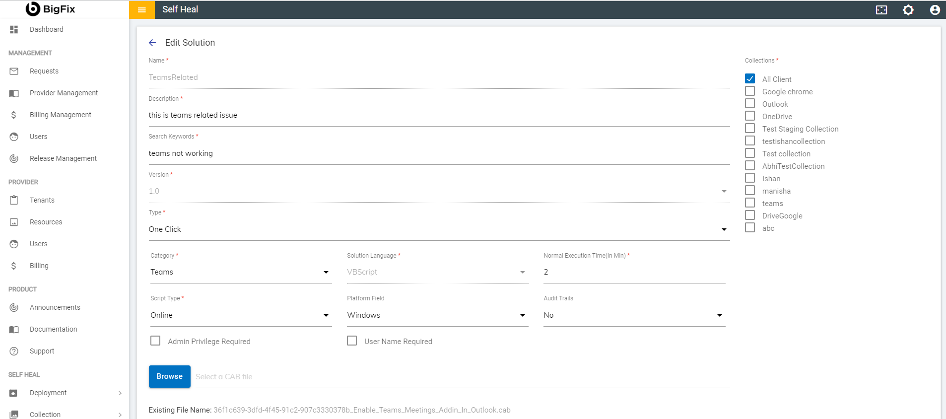 Cab File: Uploading a cab file for a solution.