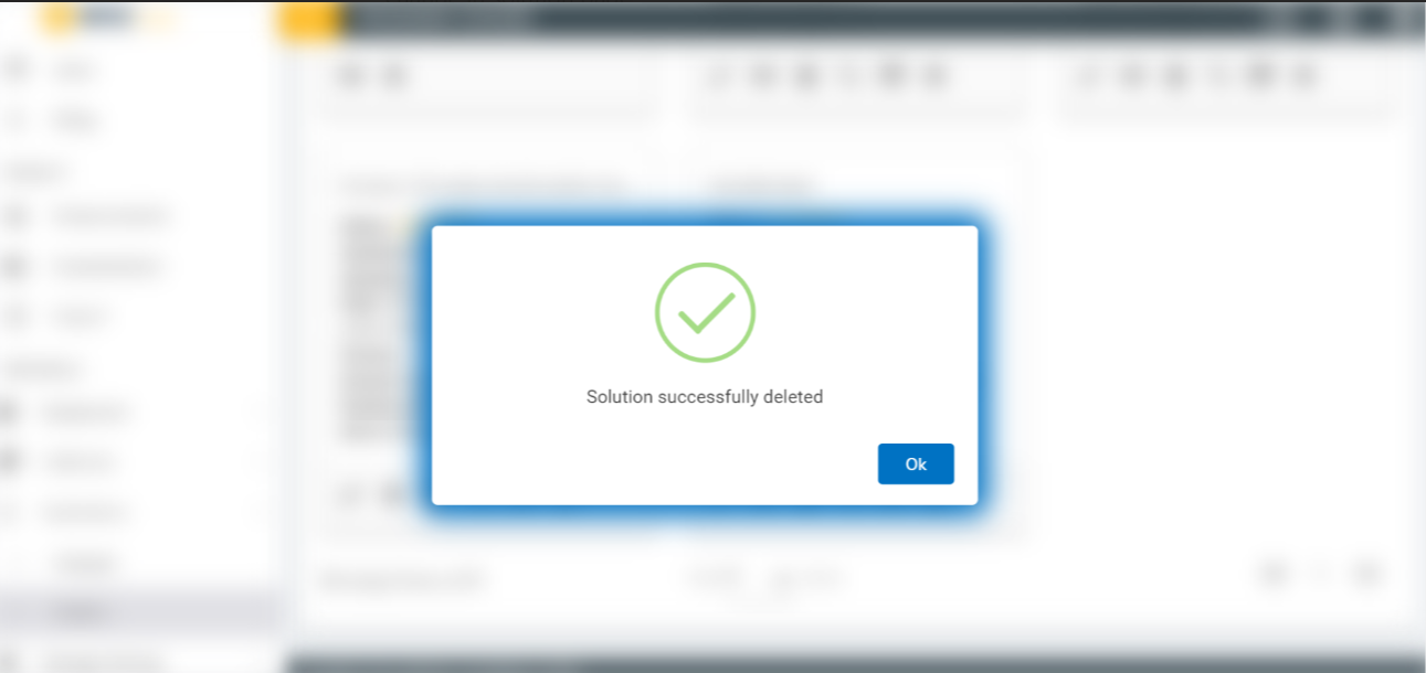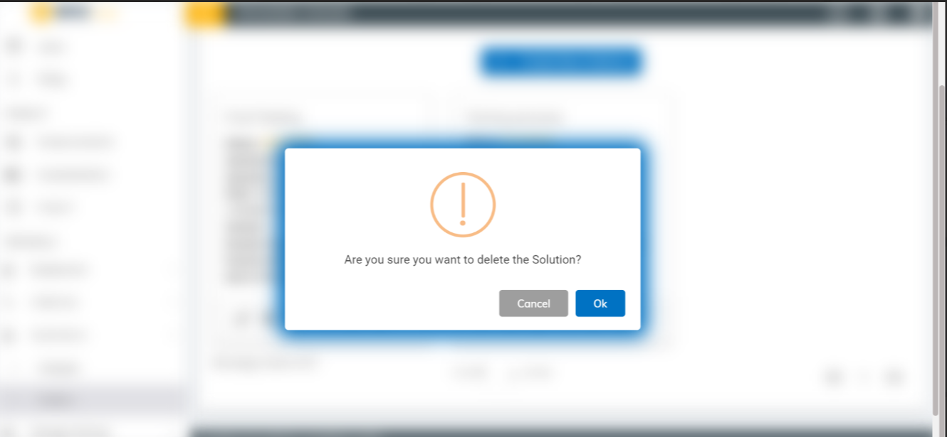 - An admin can delete a solution by using the delete icon in the Solution page. The admin must click the delete icon which is corresponding to the solution that he wishes to delete.