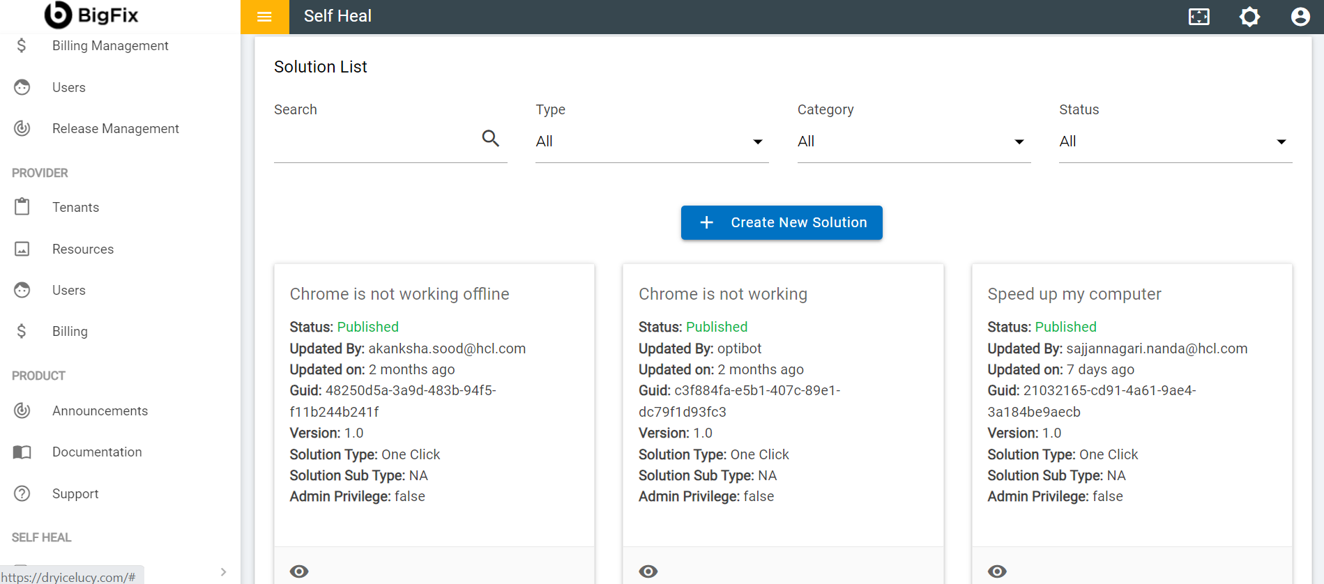 - To view a solution, click the corresponding View icon placed on each solution on the solution page.
