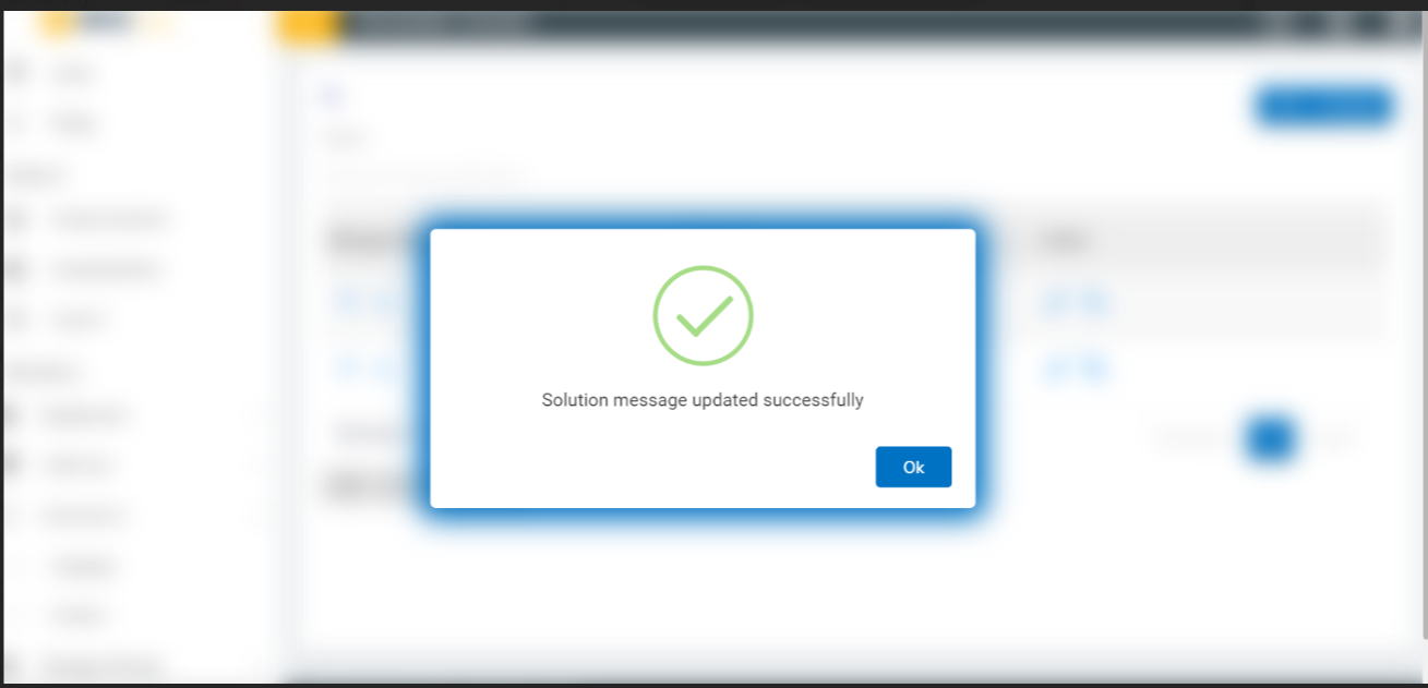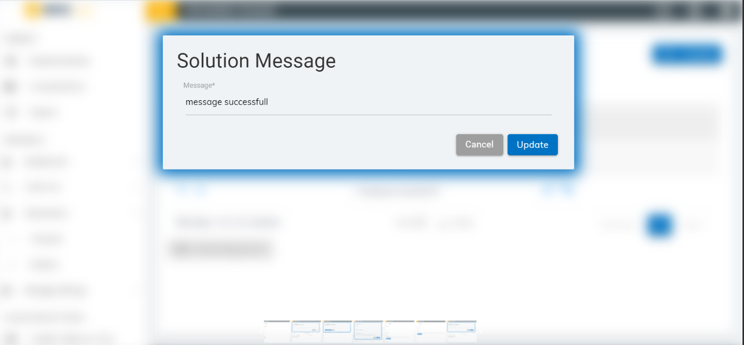- User can edit a Solution Message be clicking on the edit icon associated with a message on the Message page. The following screen appears where the user can update the message:
