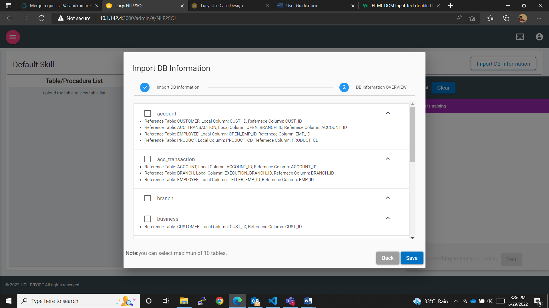 - Click on the checkboxes available along with the table names to select the tables that the user wants to upload.