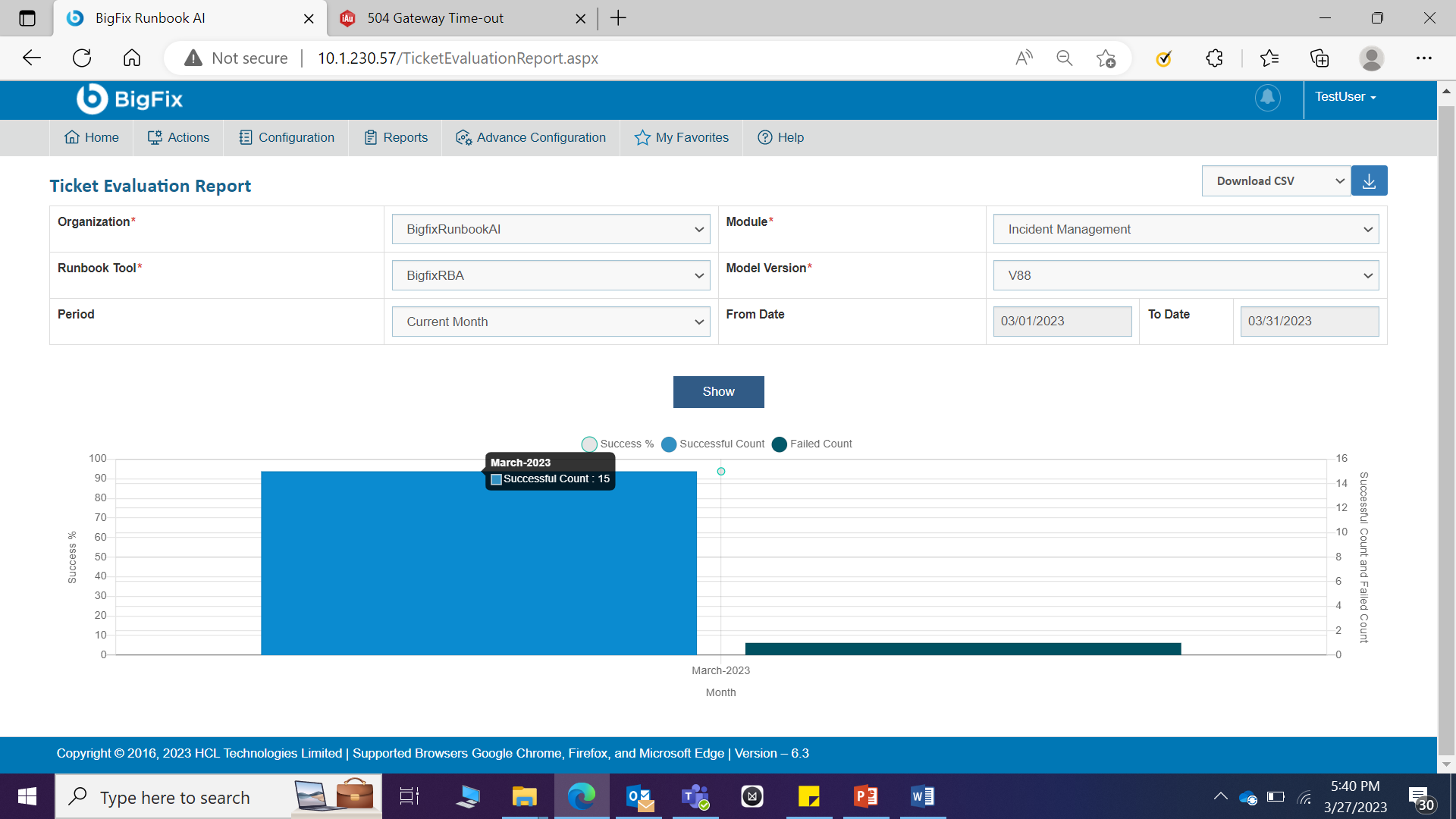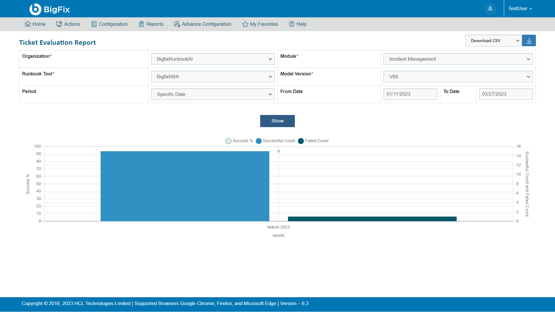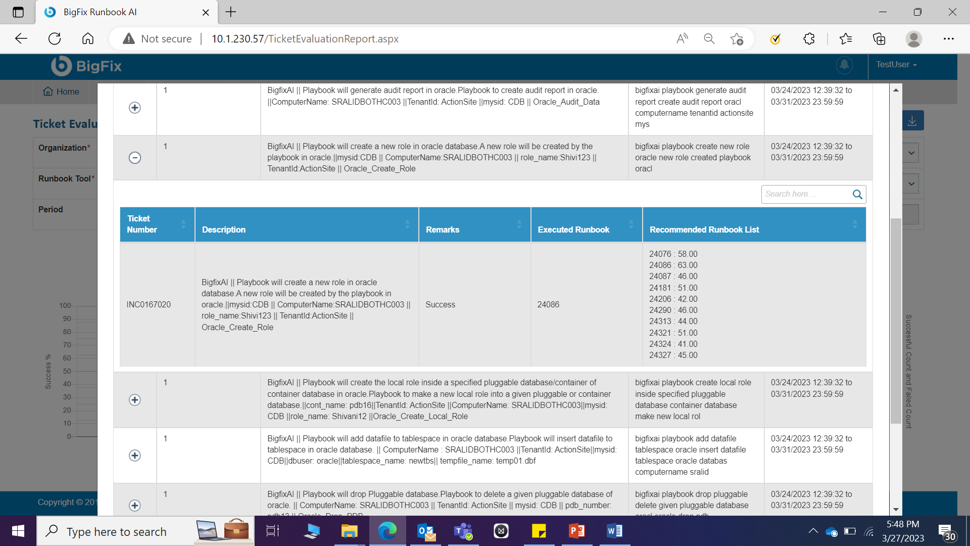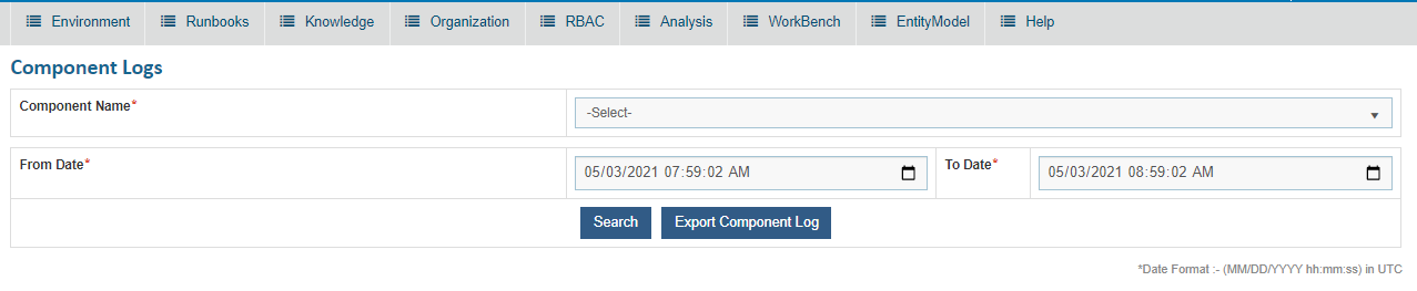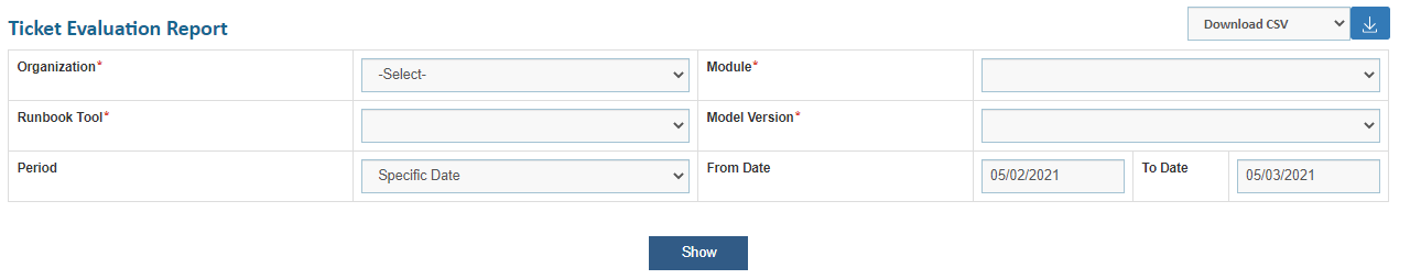 - Select Organization, Module, Runbook Tool, Model Version, and the time for which user needs to see the data.