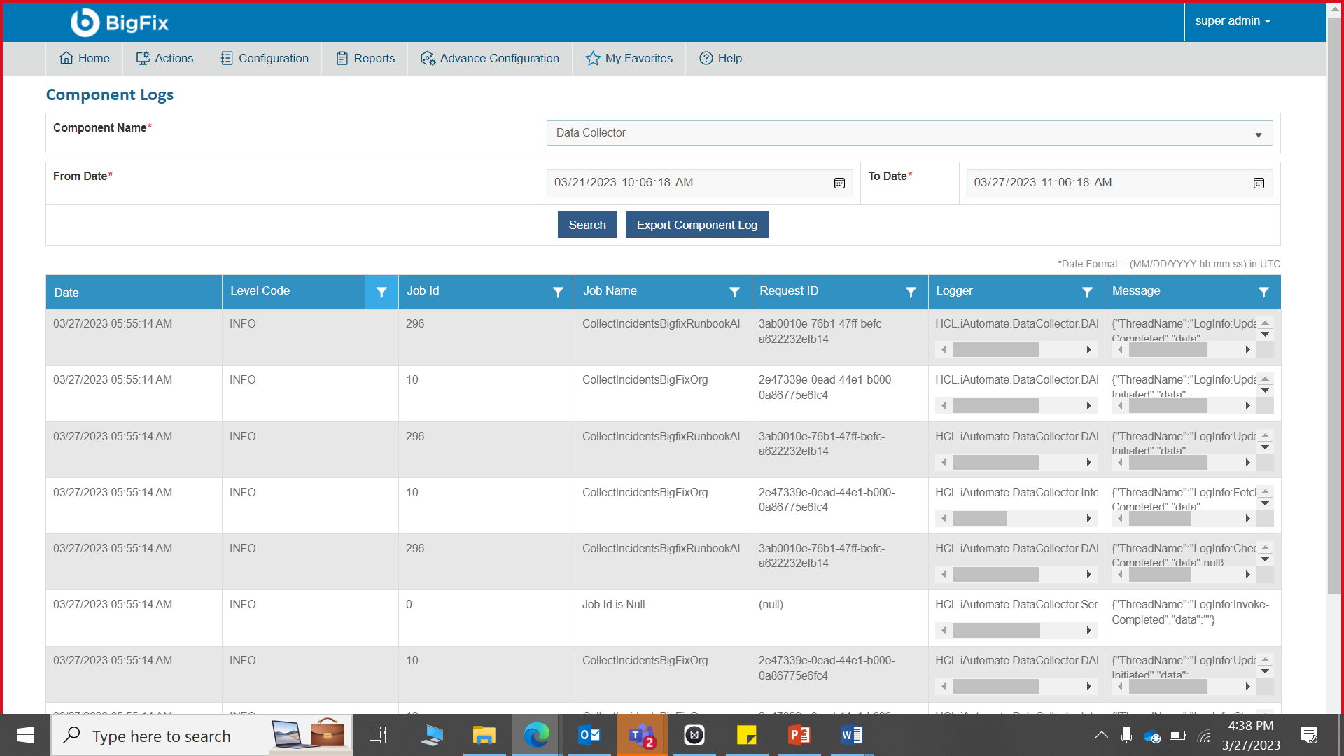 This section describes the complete activity logs of BigFix Runbook AI components.