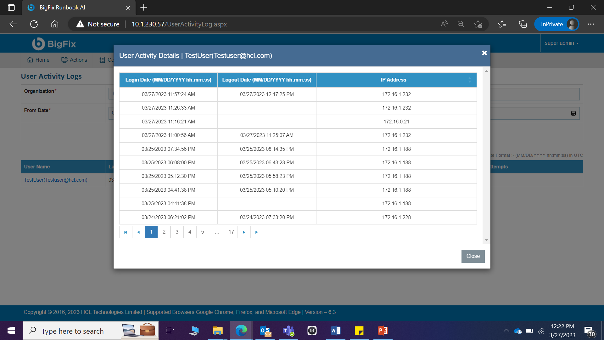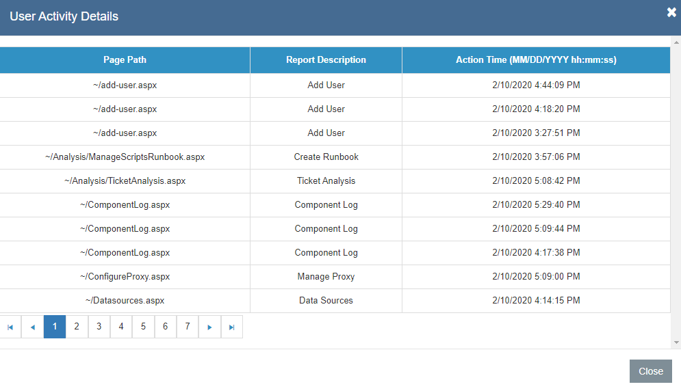 - Selecting the No. of Login Attempts next to a UserName displays the entire log details for all attempts by a particular user.