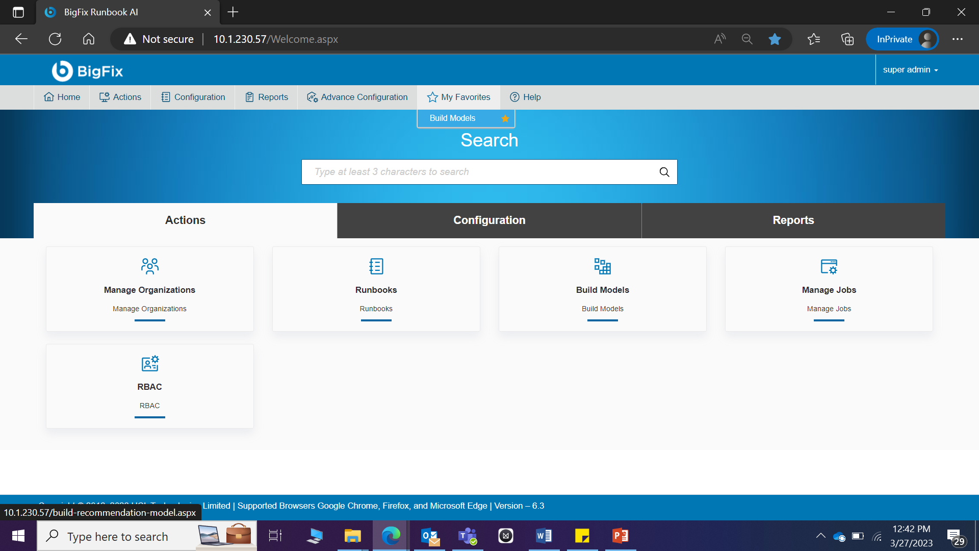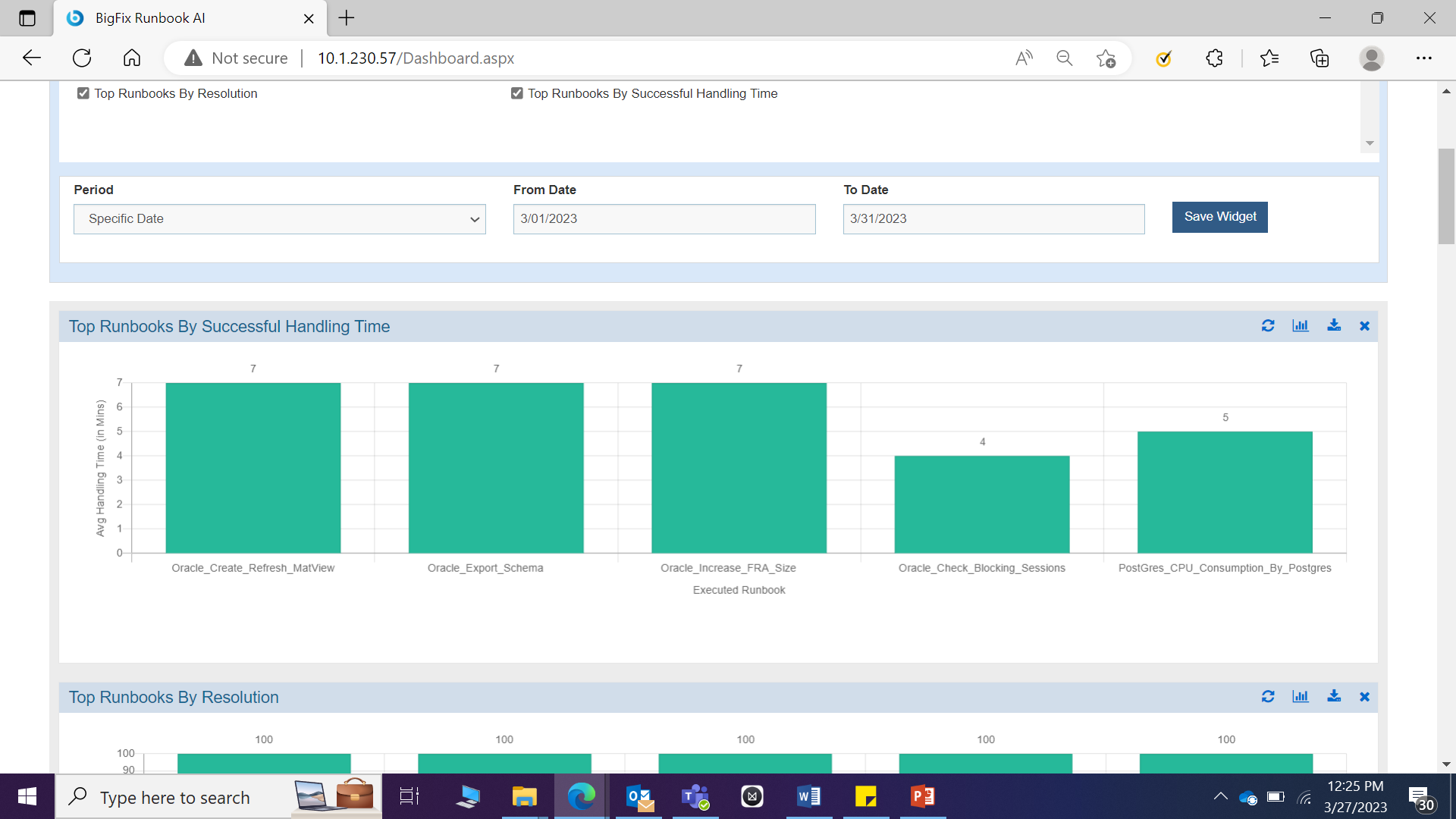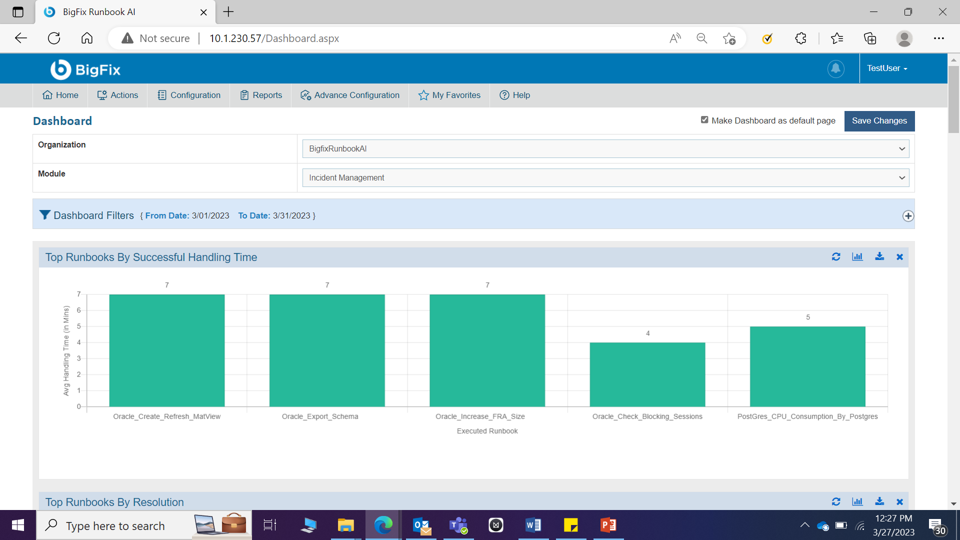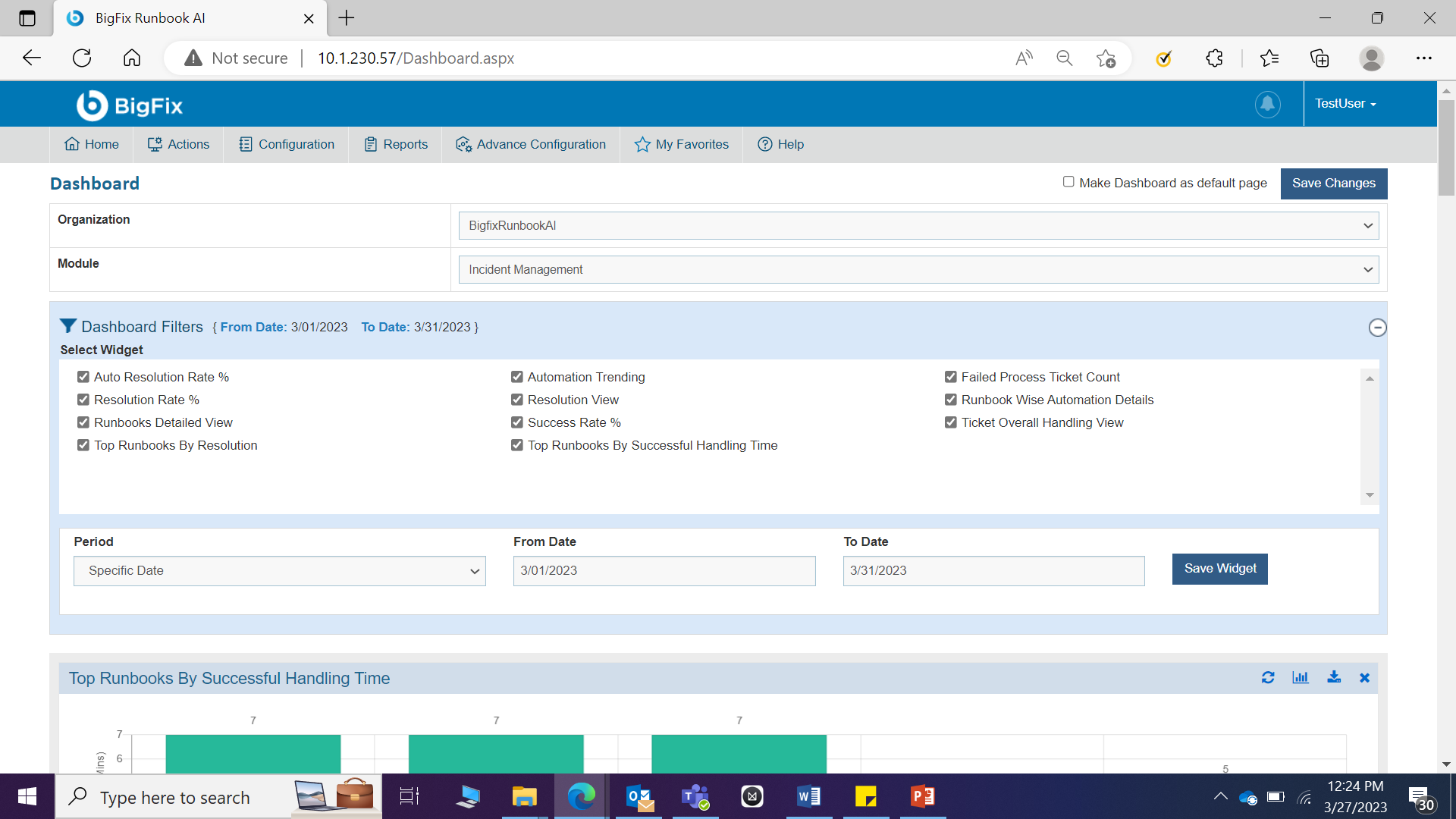 Once dashboard page is set as default page by the user, now every time the same user logs into BigFix Runbook AI, the dashboard page will be opened as home page.