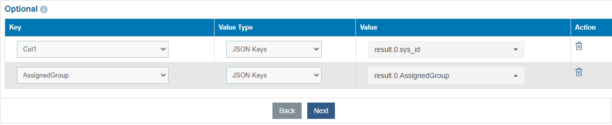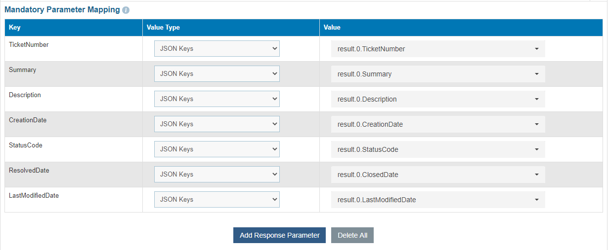 Note – These columns are mandatory. User can add more columns if more data is required to be fetched from ITSM tool.