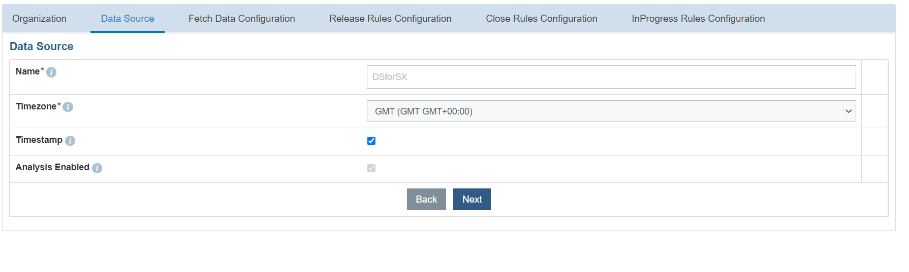 Before proceeding with the configuration related to Data Source creation, user has to ensure that an organization has been configured. If not done already, please refer to the Configuration Guide for the same and create the organization before proceeding ahead.