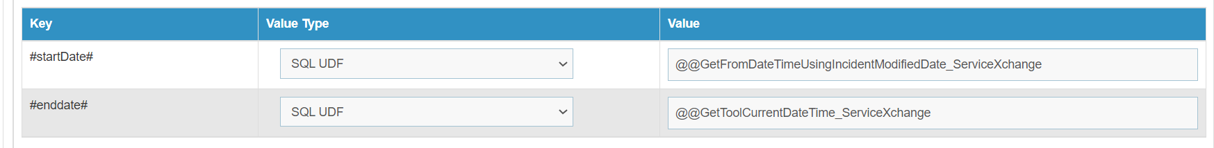 | #start_date# | SQL UDF | @@GetFromDateTimeUsingIncidentModifiedDate_ServiceXchange |