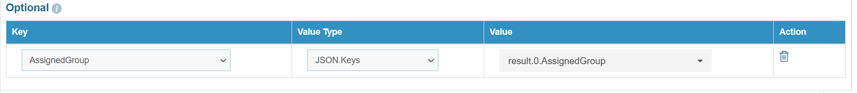 | AssignedGroup | JSON.Keys | result.0.AssignedGroup |