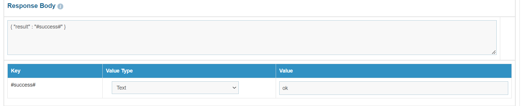 - Response Body – In this section, please enter the response body in JSON format. A sample request is mentioned below: