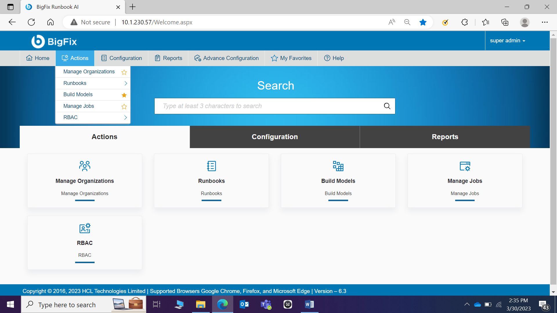 - Open BigFix Runbook AI Web URL and login with Super Admin credentials.