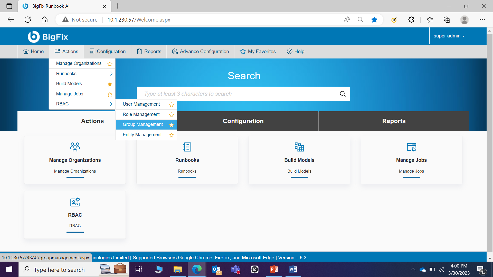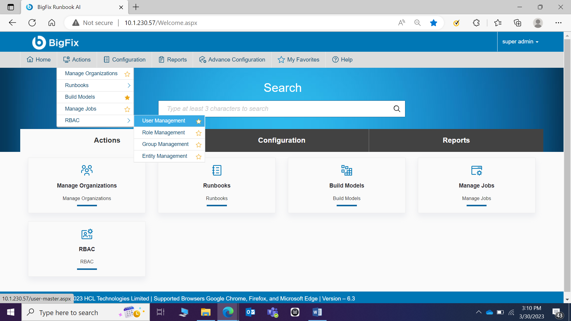 - Open BigFix Runbook AI Web URL and login with Super Admin credentials.