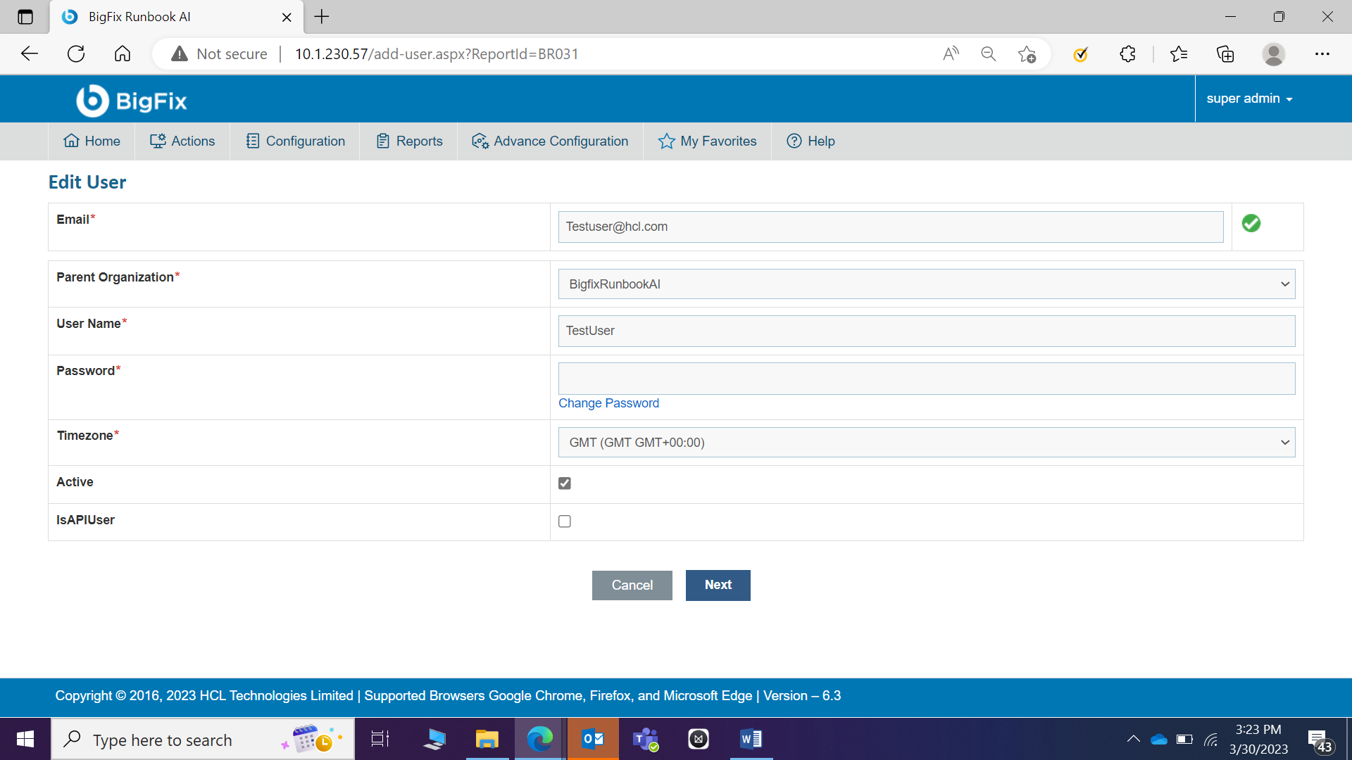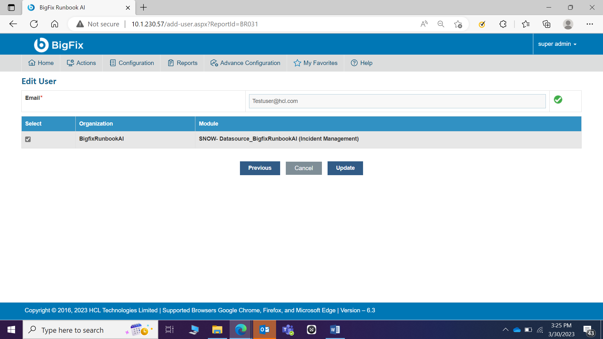 - Follow all the steps mentioned in Step 2 to create another BigFixRunbookAI_EndUser having emailed as BigFixRunbookAI_EndUser@hcl.com.