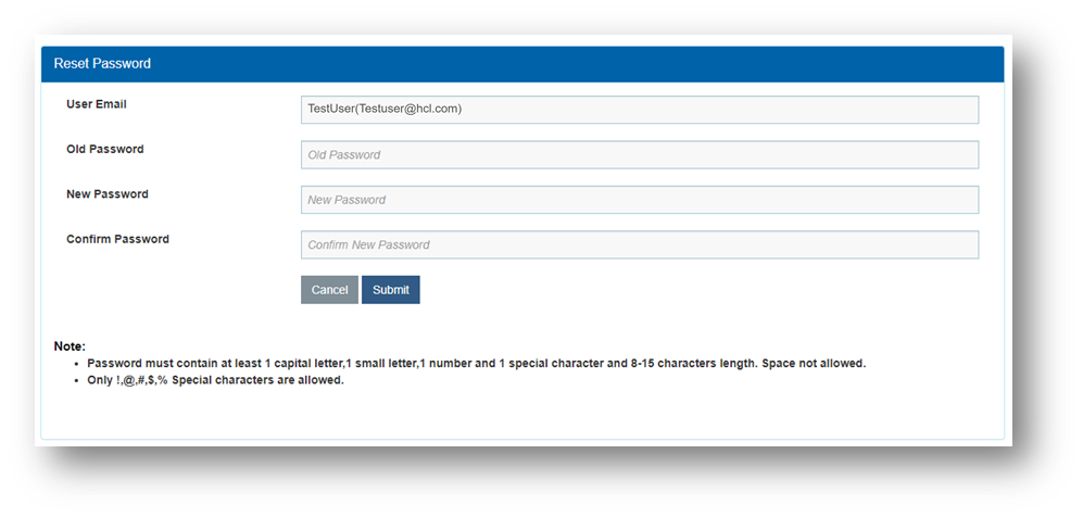 - Enter the ‘Email ID as ‘Testuser@hcl.com’.