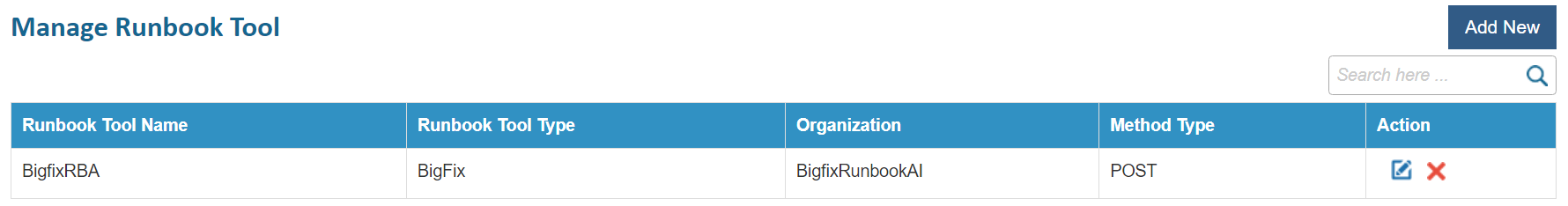 - To view the newly created Runbook Tool, go to ActionsRunbooks Manage Runbook Tool. It will be visible in the list. You can edit/delete the tool by clicking the respective icons under the Actions column.