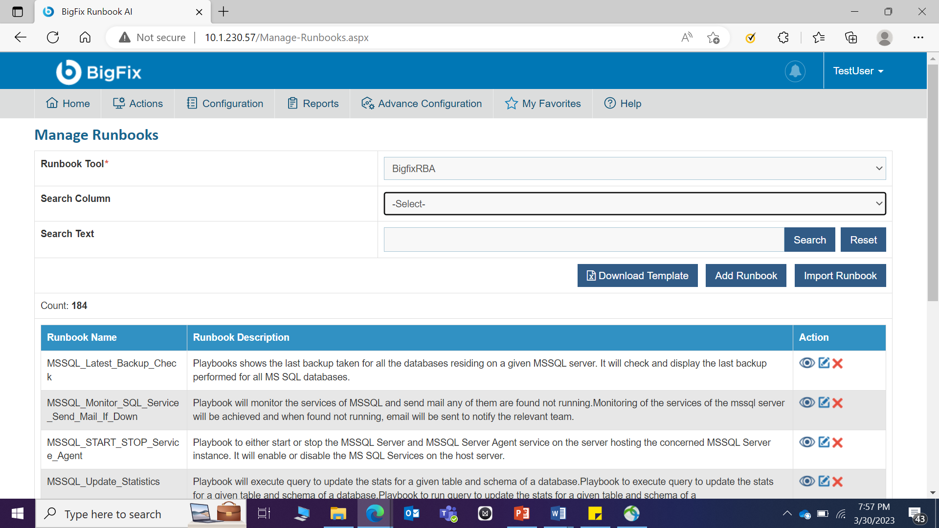 In this lab, we will showcase the detailed procedure for managing the runbooks for BigFix in BigFix Runbook AI for organization.