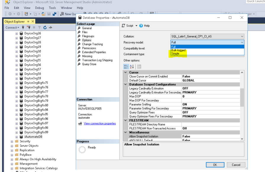 Figure 2. Figure 165 - DB Property Recovery model Full to Simple