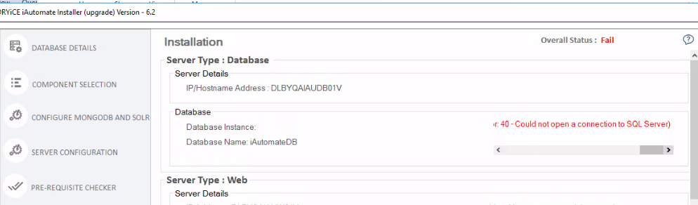 - After that, if there is an issue with the connection string, there could be a migration for the server, and the IP address might got changed in the existing/currently used database, but there could be still customer databases with the old IP address. Due to a conflict in IP addresses, installation might fail. So, after updating the Connection string, the issue should get fixed.