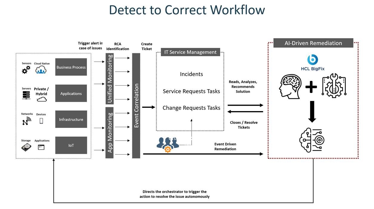BigFix Runbook AI is an Intelligent Runbook Automation product which is equipped with Artificial Intelligence, Machine Learning and Natural Language Processing capabilities for simplifying and automating the IT Operations issues resolution lifecycle including incidents, service request tasks, change request tasks and events. It leverages its NLP capabilities for analyzing and understanding the context of a specific issue, recommends the most relevant solution and even triggers the execution, thereby enabling Zero Touch Automated Remediation. It also provides AI-driven Knowledge Recommendation by suggesting relevant knowledge articles from various repositories, both internal and external, as and when required by human agents.