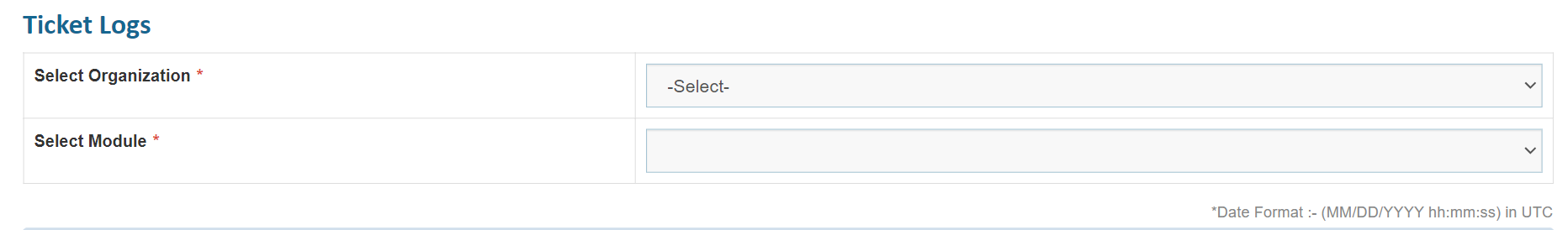 - Select an Organization from the drop-down list and then select the Module for organization and module-specific tickets.