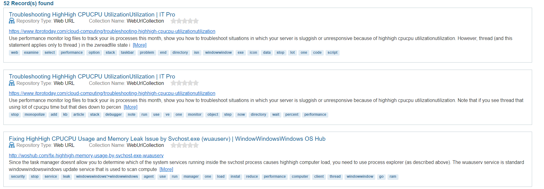 This module allows users to search across the organization’s internal repositories such as SNOW and external domains such as Stack Overflow and Ubuntu.org. You can also perform an advanced search by applying conditions followed by the search term and Boolean condition (OR, AND, and so on) for more refined results.