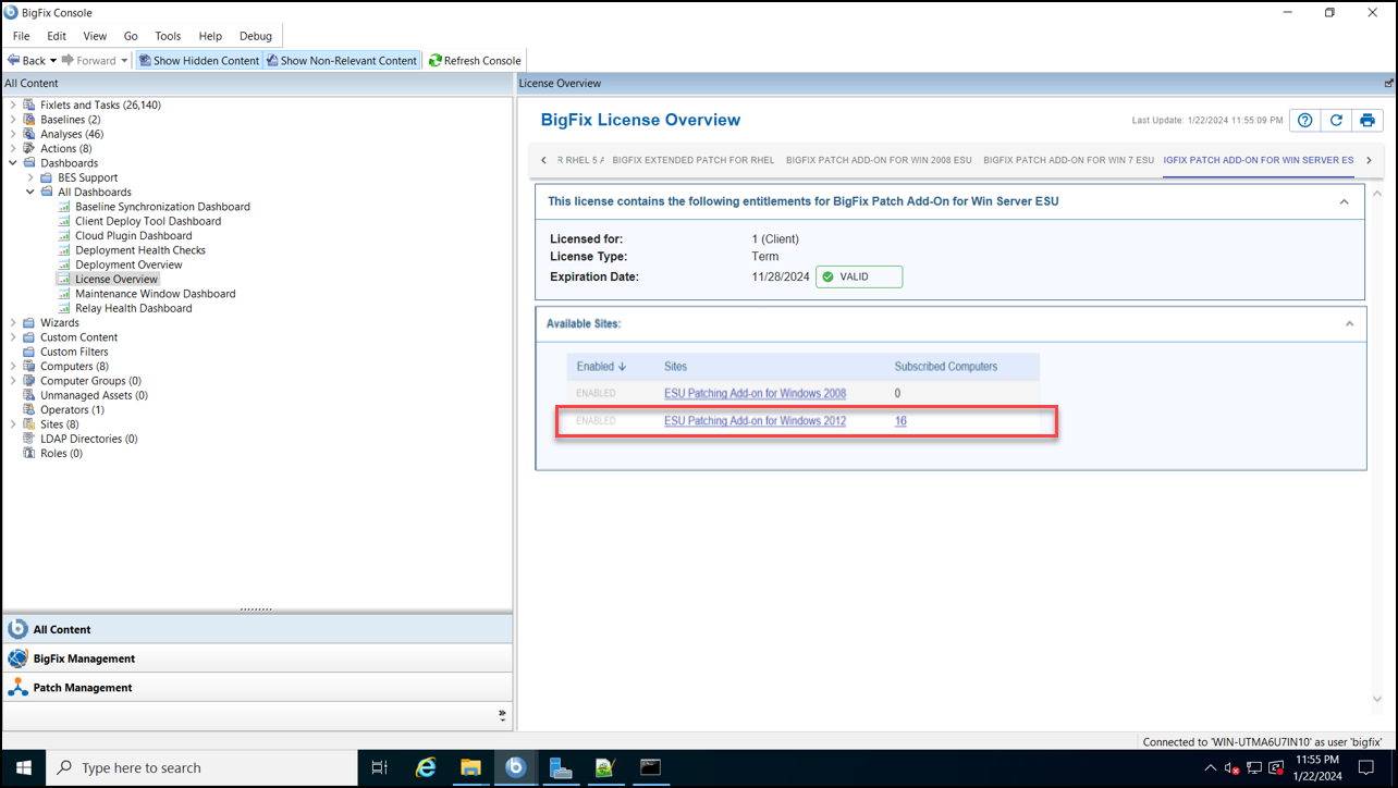 Enable the ESU patch sites.